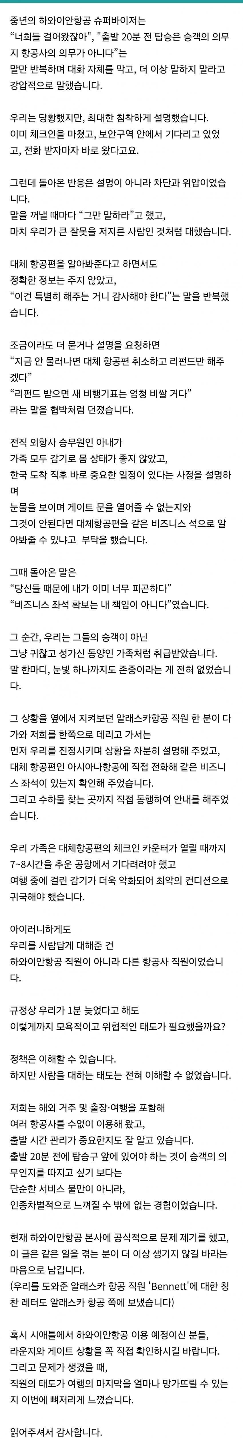늦어서 비행기 못탄걸 인종차별이라고 하는거야?아내가 승무원이라고 하는걸봐서, 물어보면 되는걸 알아서 ㅈㄹㅈㄹ 했구만그냥 늦어서 못탄걸 남탓을 저렇게 한다고? ㅂㅅ인데 그냥