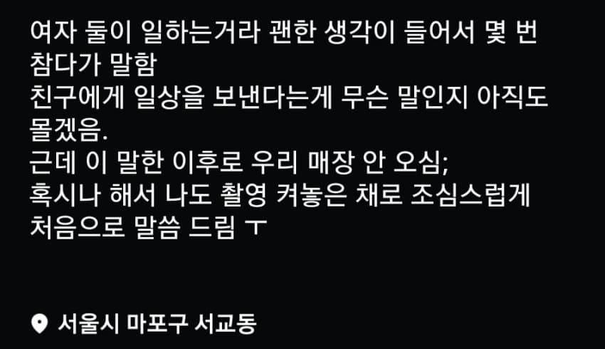 여자 둘이 일하는곳인데 얼탱없어서 물어보니
