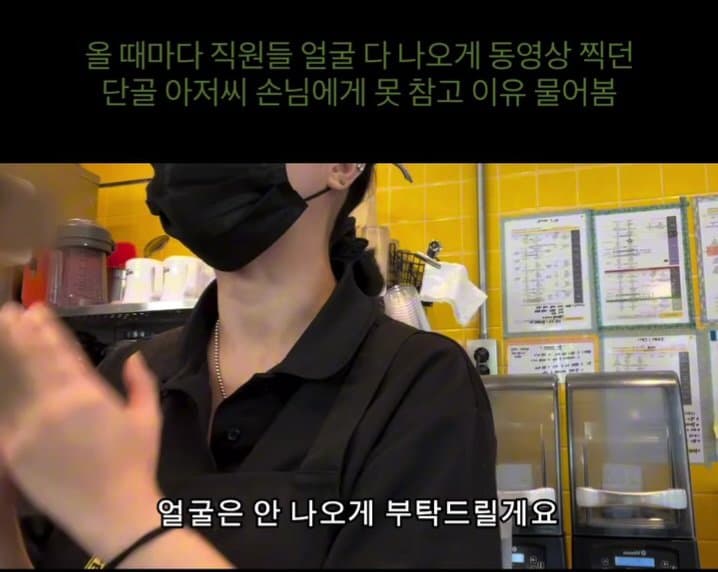 그냥 포기하고 얼굴은 찍지말라는 카페주인