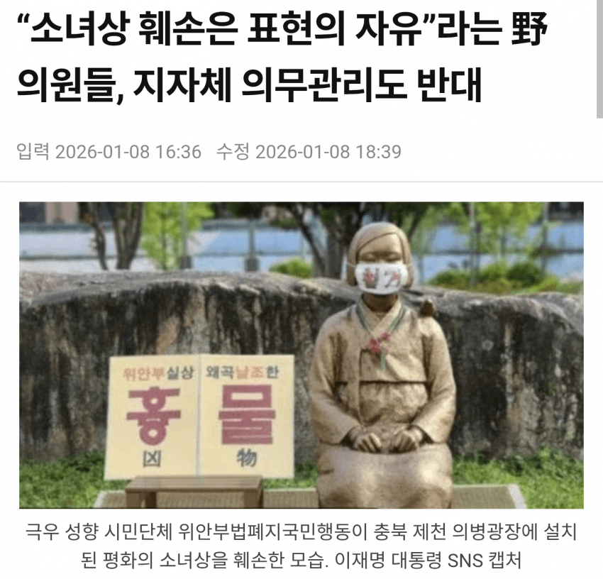 앞서 이재명 대통령은 평화의 소녀상을 모욕하는 시위를 벌여온 친일 성향 단체에 대해 경찰이 수사에 착수하자