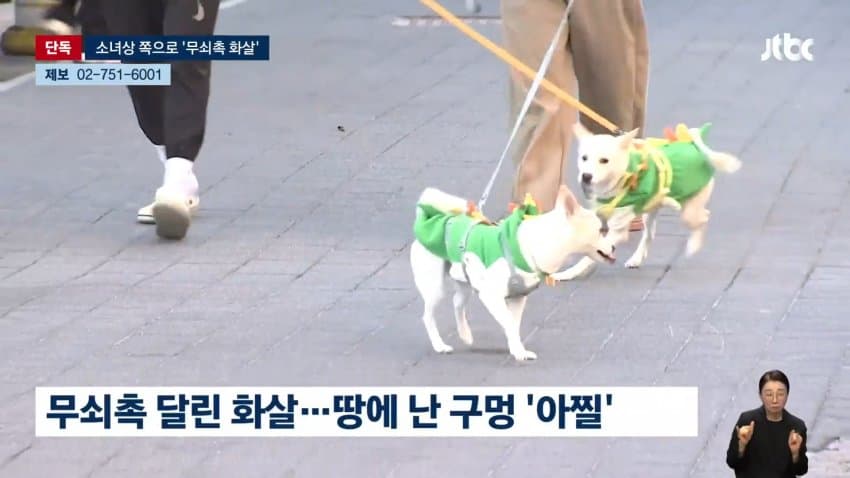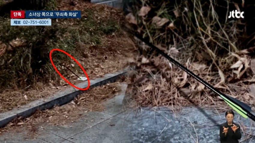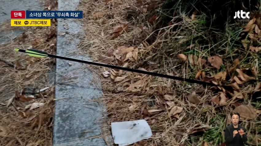 화살이 꽂힌 바로 옆엔 반려견과 산책하던 50대 여성도 있었다고 함