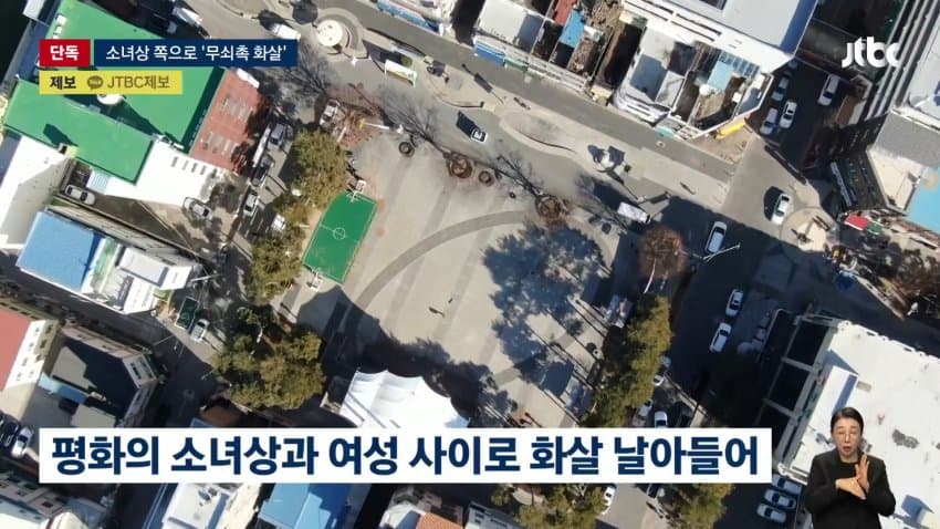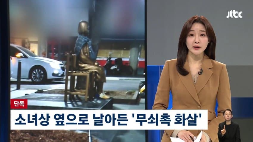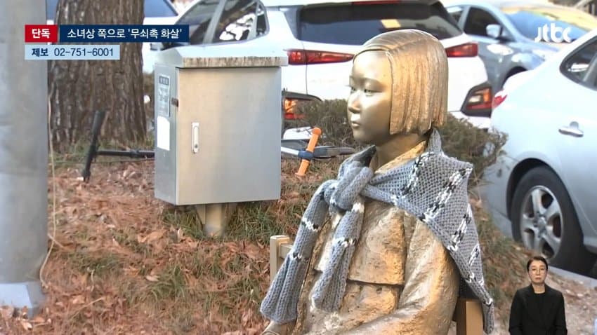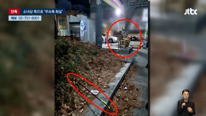 진짜 사람을 노린 건지 소녀상을 노린 건지 아직 정확한 건 없지만 저기서 활을 쏜 것 자체가 제정신이 아닌 행동임은 분명함