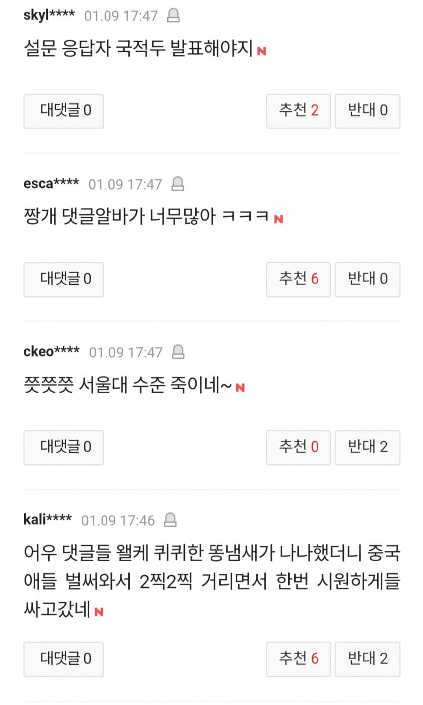 댓글다는사람들 실명인증한 사람인데 국적을 달아서 뭐하게