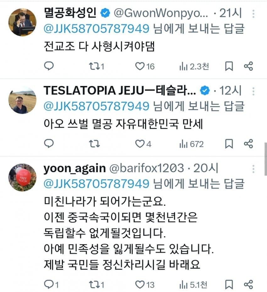 내란 = 민주당 중국 북한 러시아 이란 극좌파 세력들내란견 = 여론조작을 위해 거짓 선동하는 극좌파 세력들내란 우두머리 = 이재명 시진핑 김정은 푸틴 하메네이
