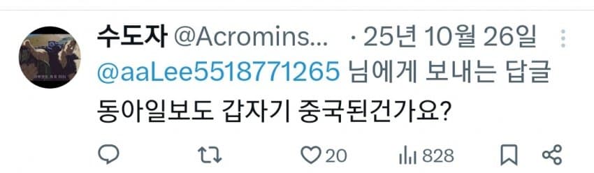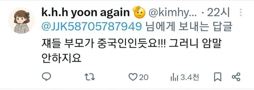 저 프레임 씌우는것들도저 논란댓글 다는 애들도 한패임화교몰이 젤 좋아하는 애들이 중국애들이다