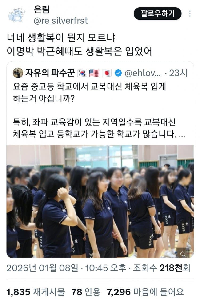 전교조 병@신인건 둘째 치고 교복은 편한게 좋지 공부 해야되는데