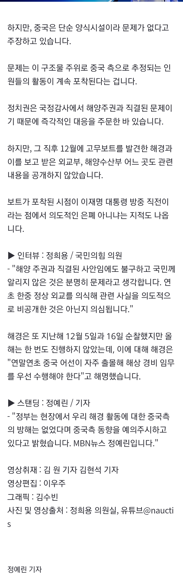 저긴 중한 공용구역이고 저시설은 그냥 양식장일뿐이다