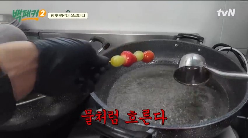 하지만 원래는 눅진해야 되는 탕후루가 물처럼 흐르는 비상사태가 발생한다