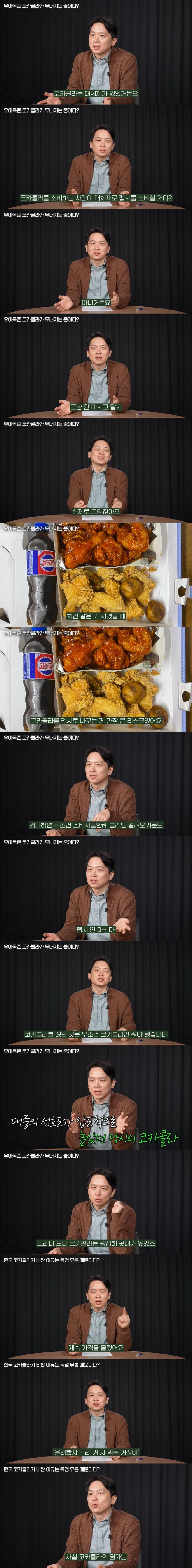 왜 한국만 코카콜라가 펩시콜라보다 고급이라는 이미진지 모르겠네리터당 가격이 펩시콜라나 칠성사이다보다 비싼 부분은 무조건 거품이야
