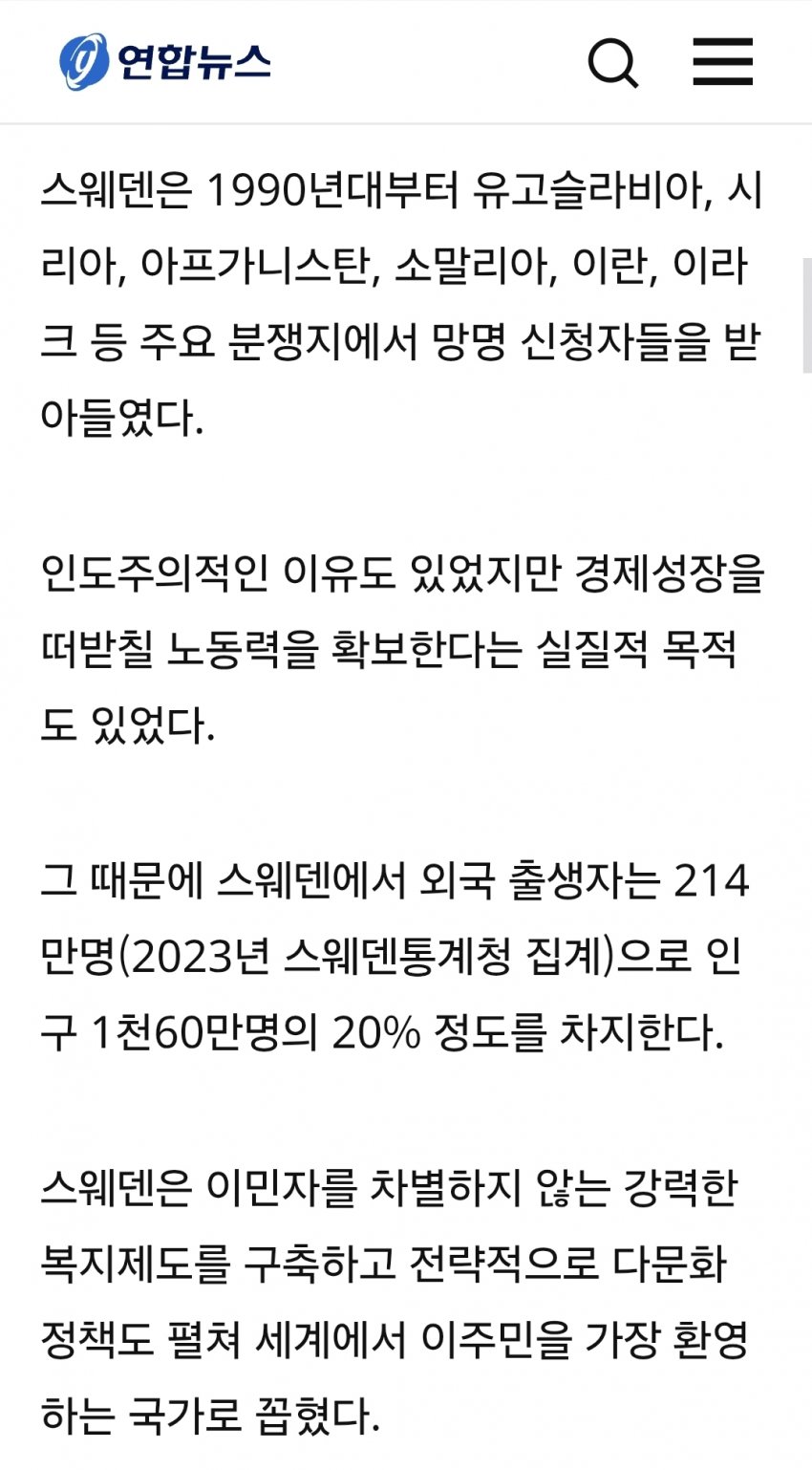 스웨덴이 저렇게 된 가장 큰 이유는 너무 상대방 문화 배려해서 그럼4~5년 전에 스웨덴 어린인이집에서 난민 자녀들이 스웨덴어 거부하고스웨덴 문화 거부한다는 글 실베에 올라온적 있음그 나라에 동화될 필요가 없게 되니까 자연스레 이주민들의 정체성이 급격히 커지고1국가 2민족 정체성이 생기는 순간 이건 뭐 차별이나 존중이니 문제가 아니라 생존의 문제가 됨