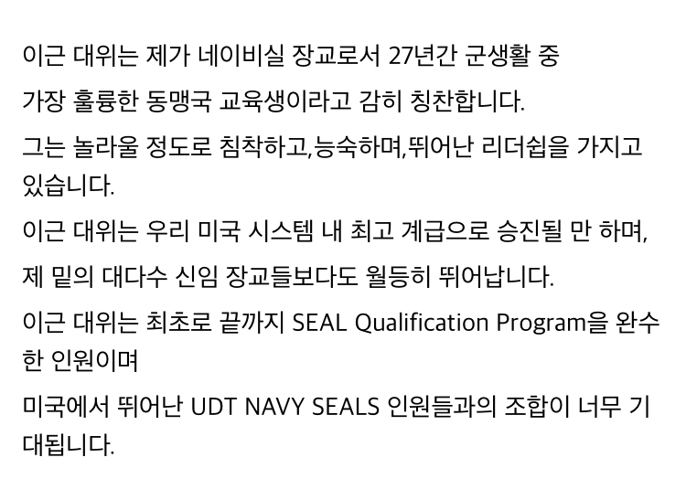 이근말고 저거 고급반 수료한 한국인 단 0명. 1명도없음 (매년 udt에서 날고긴다는애들 계속 보내는데 죄다 탈락함)