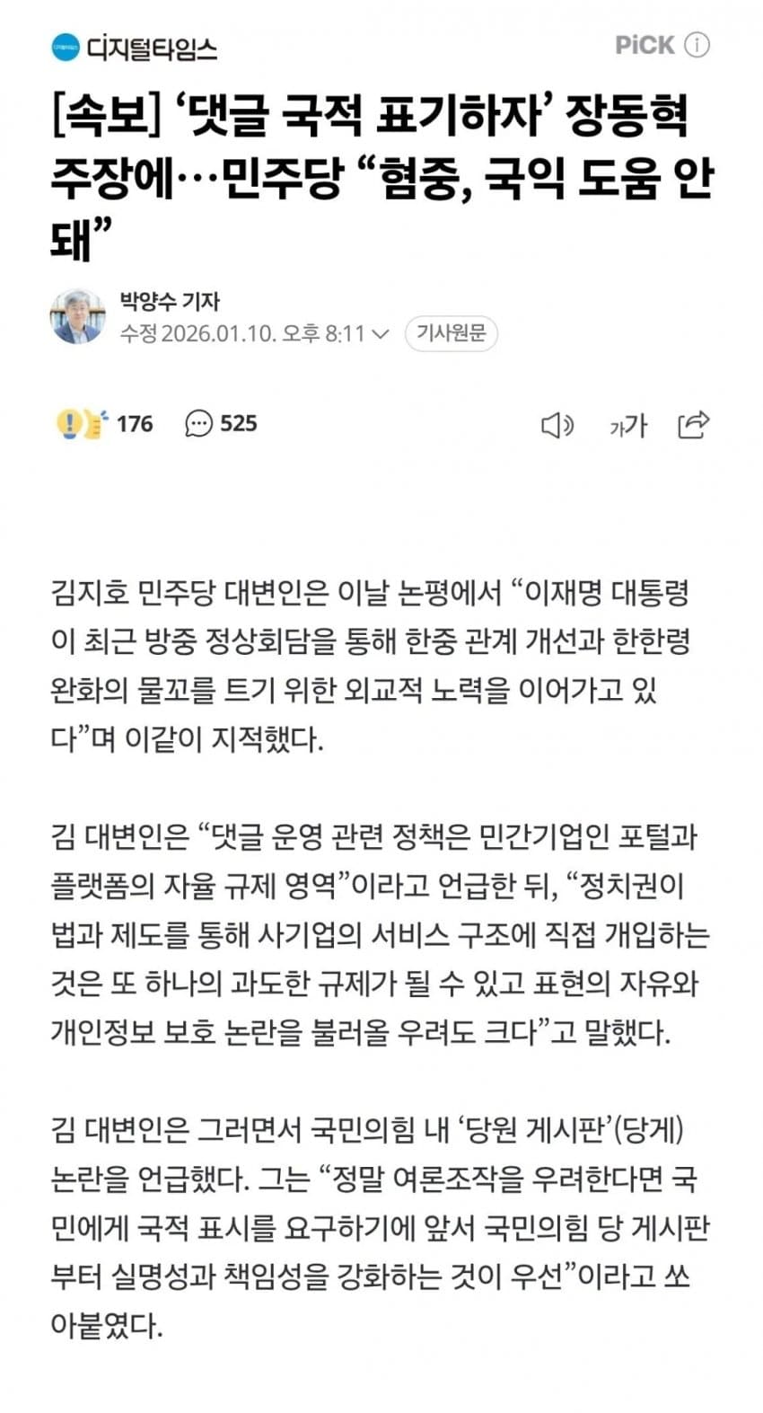 이러면 어느 나라가 우리 인터넷에서 분탕질치고 다니는지 민주당이 크로스 체크해줬다고밖에 해석이 안 되잖아.