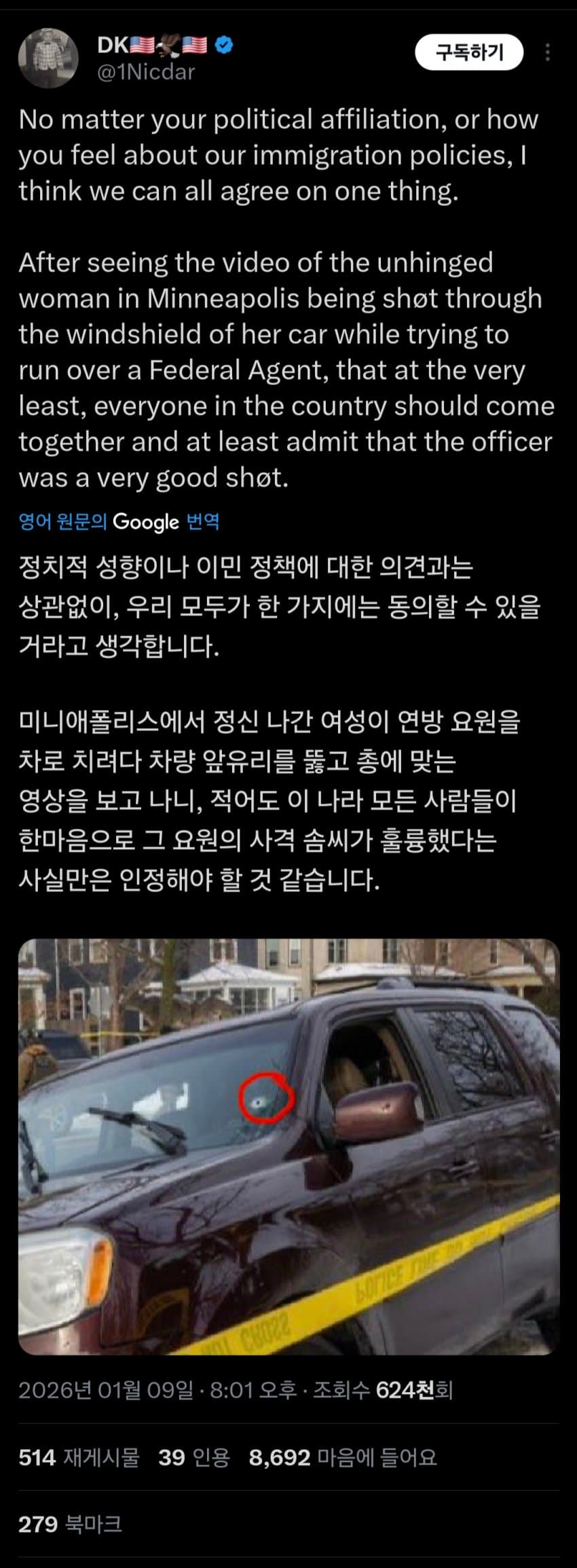 ICE 요원의 사격 솜씨가 대단하다는 글