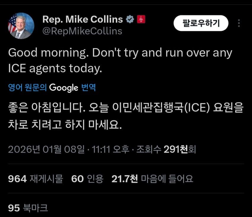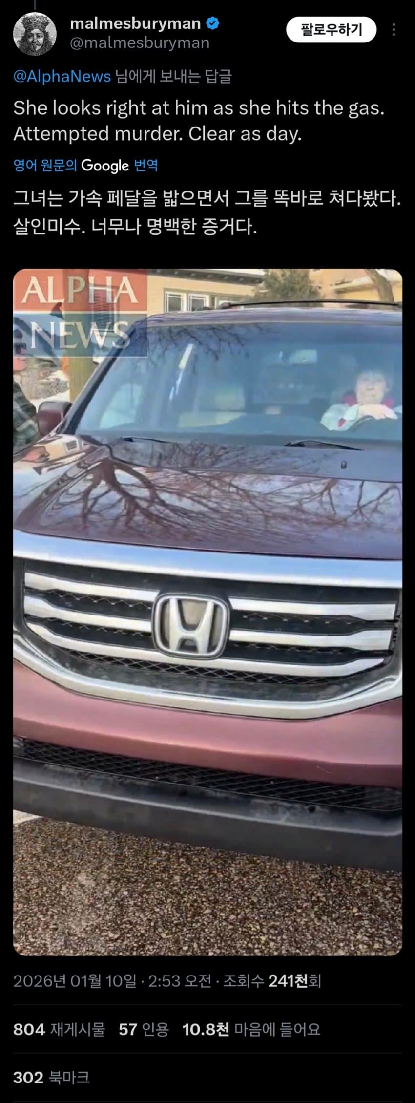 그에 따른 대치상황에서 ICE 요원을 차로 치기까지 하다
