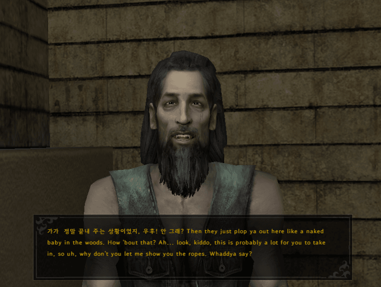 제일 먼저 성공한 부분은 이미 인젝터가 상대적으로 쉽게 처리될 수 있었던 게임 내 대화 다이얼로그 부분이었습니다: