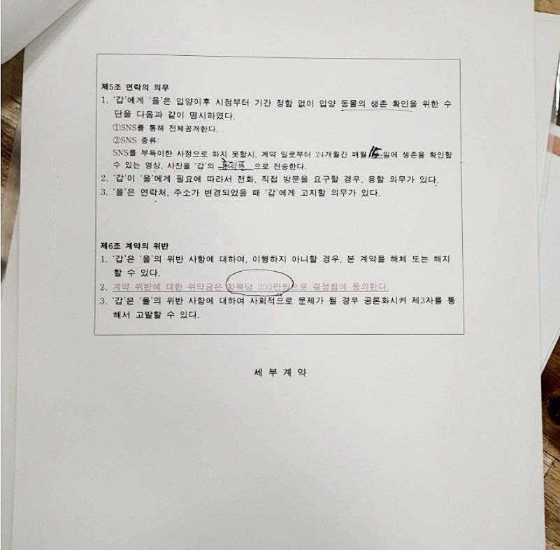 이렇게 요구하면서 싸인하기 전에 도망갈 기회를 저렇게 만들어줬는데 꾹 참고 입양했으면 그건 그거대로 바보같네