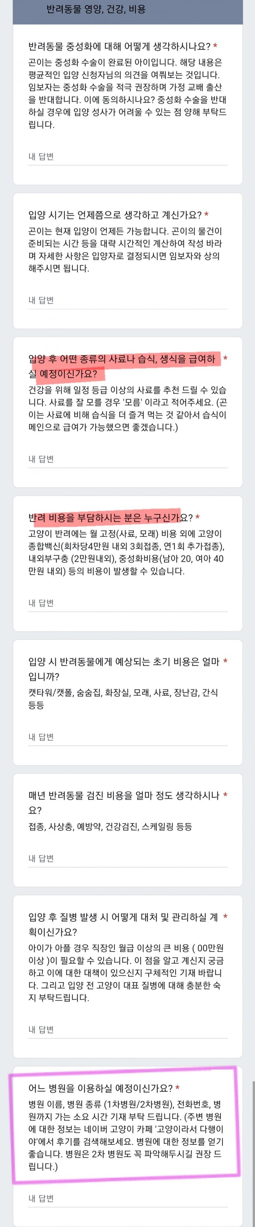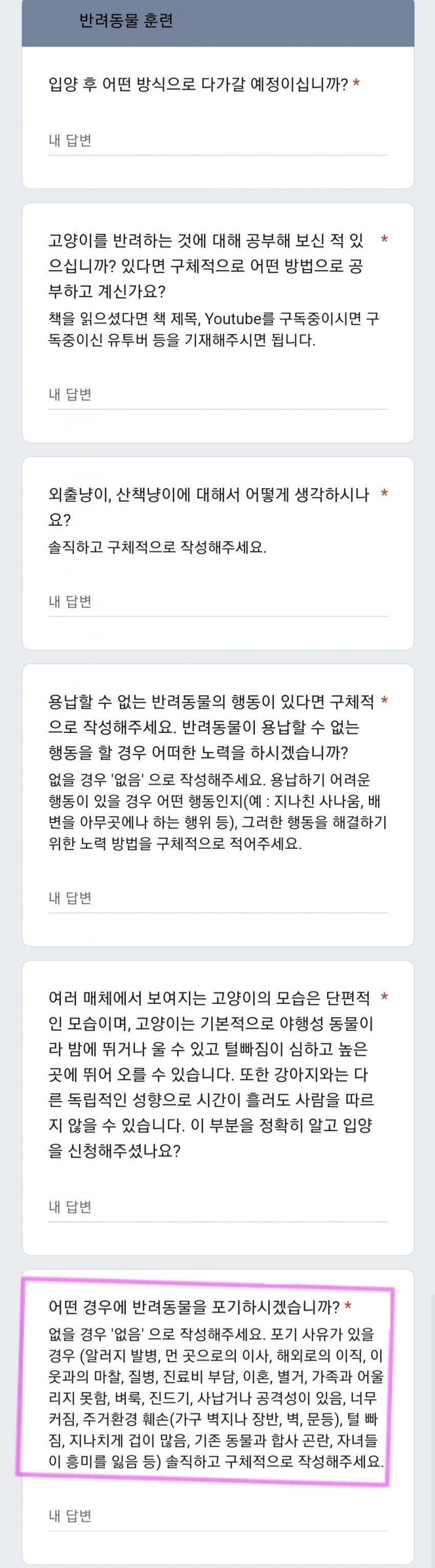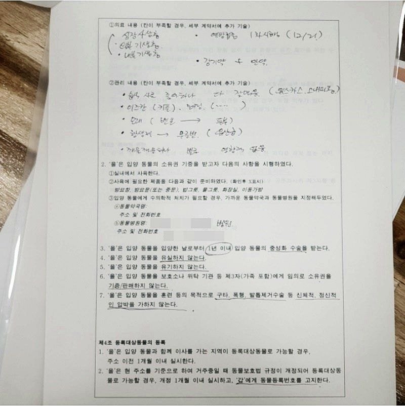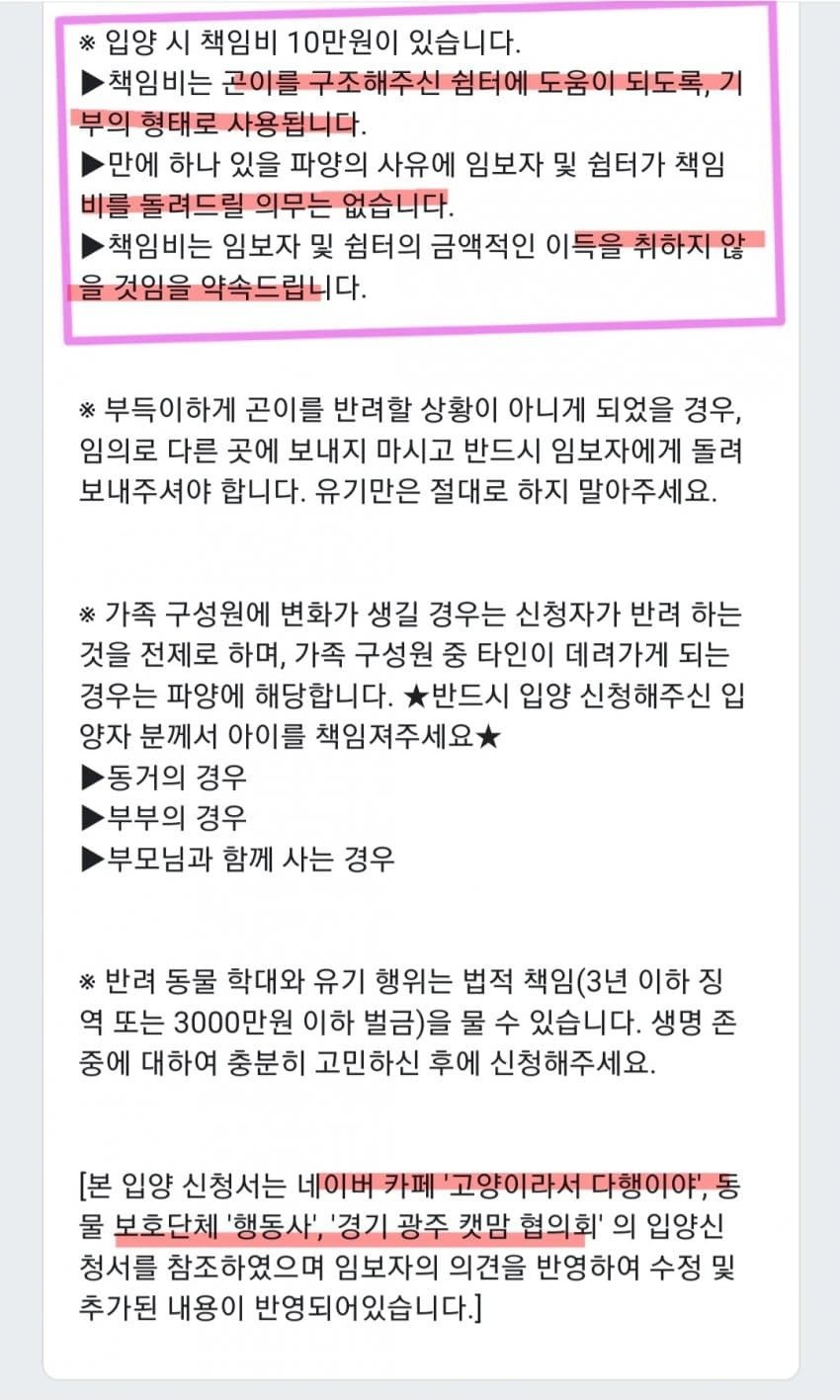 책임비 10만원은 훼이크고 저거 받아오는 순간 예방접종 병원비가 진짜임 브로커 마냥 자기가 중간에 마진먹고 아는병원에 접종맞아야 한다고 강요한다 더이상 돈나올 구석이 없음 어떤이유로든 암튼 자격부족이라고 입양박탈시키고 다시 데려가서 새로운 손님한테 첨부더 저거 다시반복 생계비 자체가 저기서 나오는 구조라 악착같이 뜯어냄