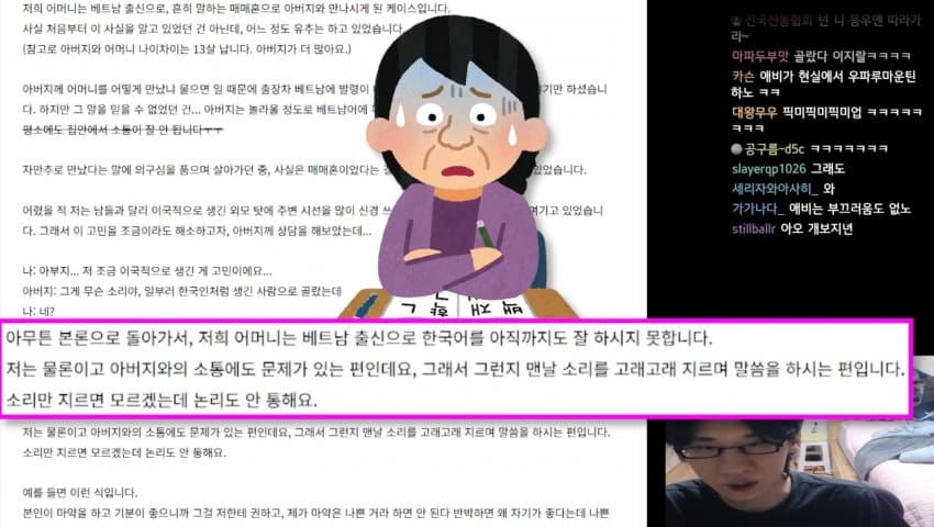 한국어 못하는건 패시브(초등학교 중퇴라함)