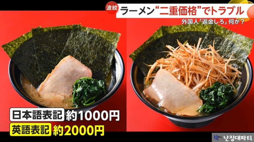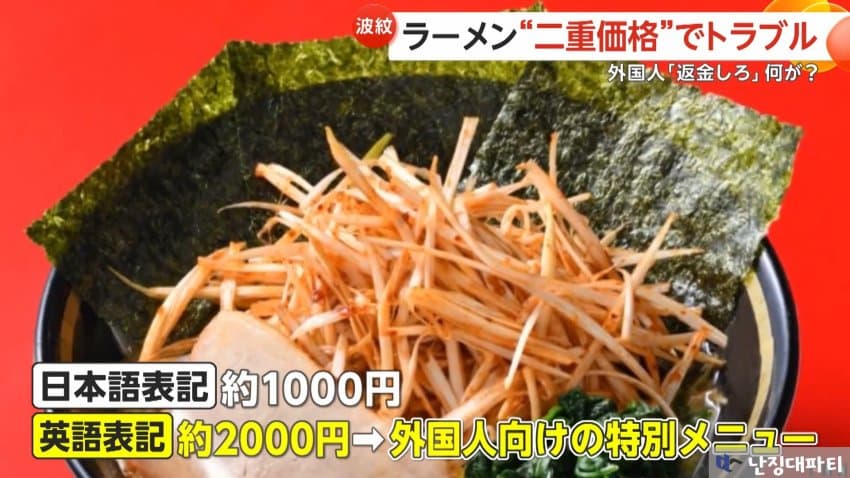 · 日라멘집 이중가격 논란... 외국인에 바가지 씌우고 외국인탓