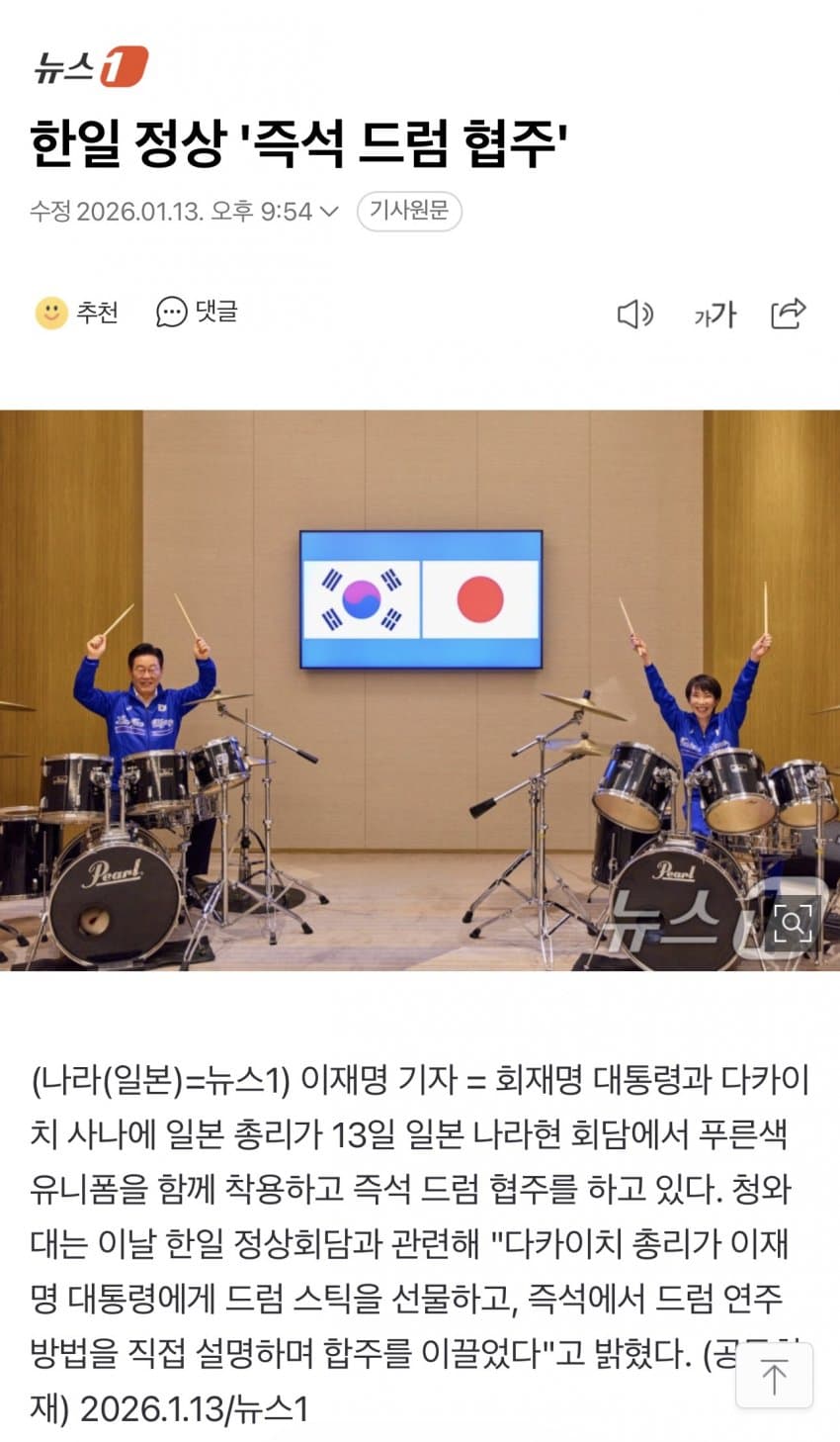팩트 - APEC 회담 때 이재명 대통령이 사나에 총리한테 먼저 고향인 나라현에서 회담하면서 드럼 알려달라고 부탁한 거에 사나에 총리가 화답한 거임 니 지능이나 의심해보길
