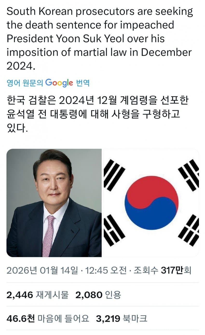 옛날 군사독재시절 학살계엄이랑 같다는식으로 어케든 프레임 씌우려고 사형구형한거같은데 글쎄