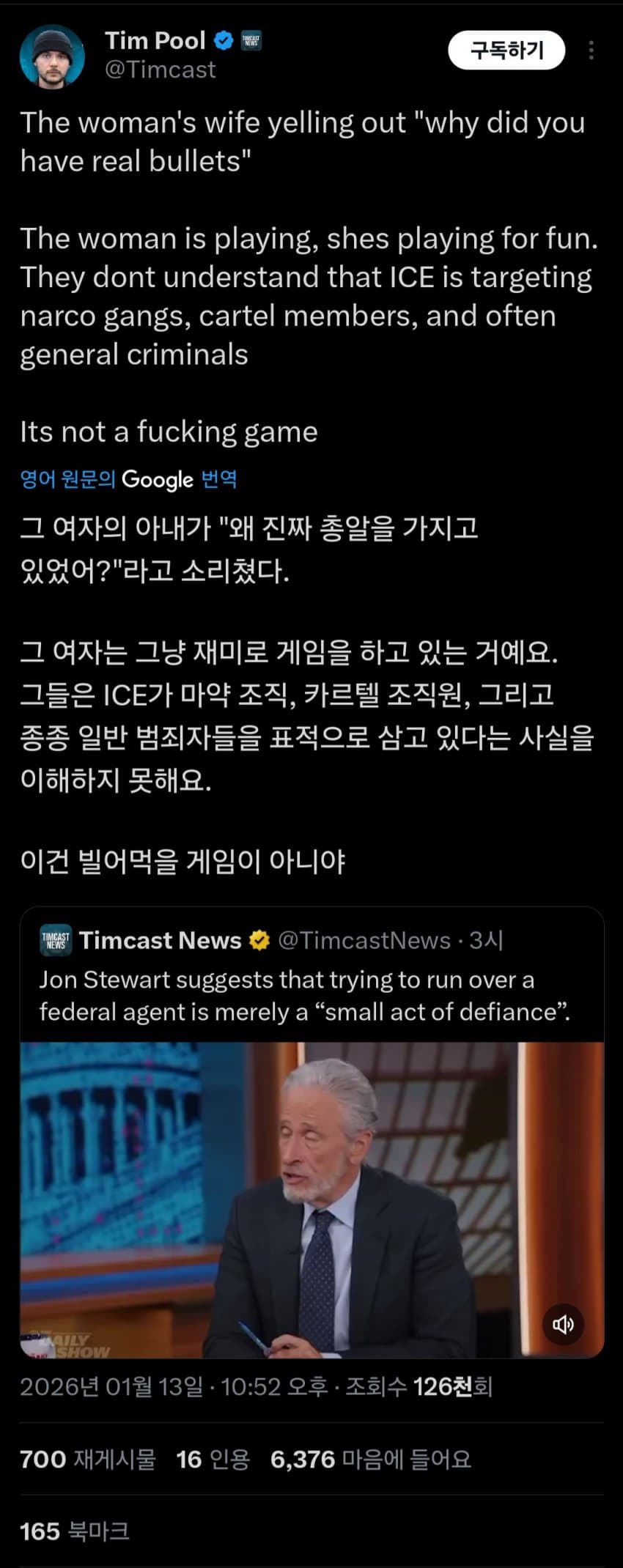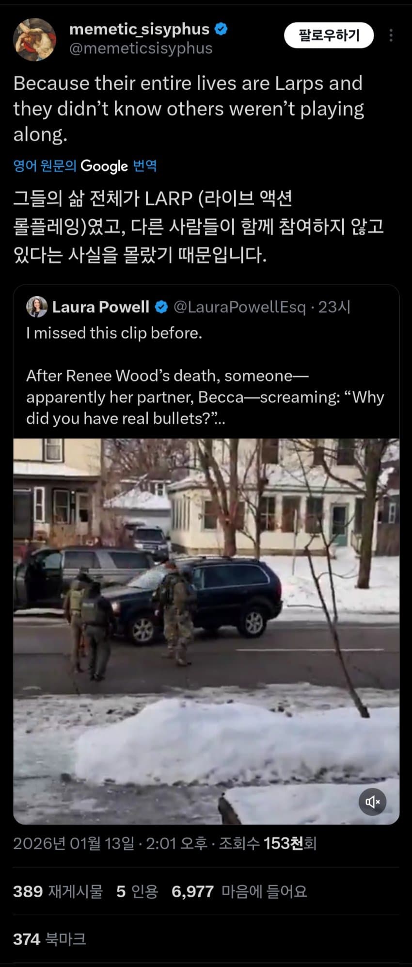 굿 부부는 애초에 ICE 요원을 진짜 총 가진 사람이라고 생각을 안 했을 가능성이 있는 것