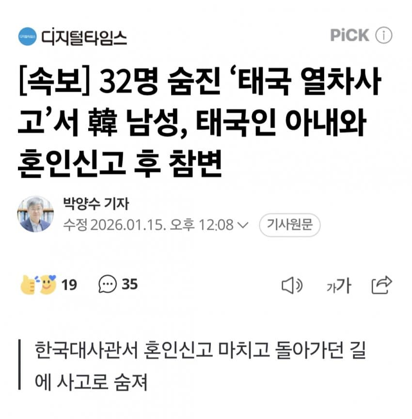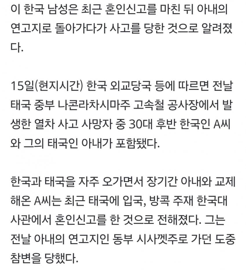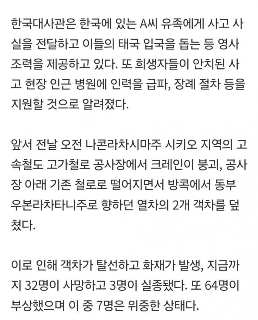 32명 숨진 '태국 열차사고'서 한국인 1명 신원확인...