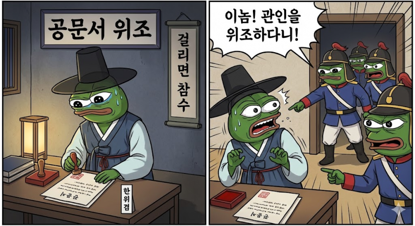 공문서위조죄? 조선시대엔 그 자리에서 목이 날아갈 수도 있는 중죄임에도 알면서 저지랄을 한거임