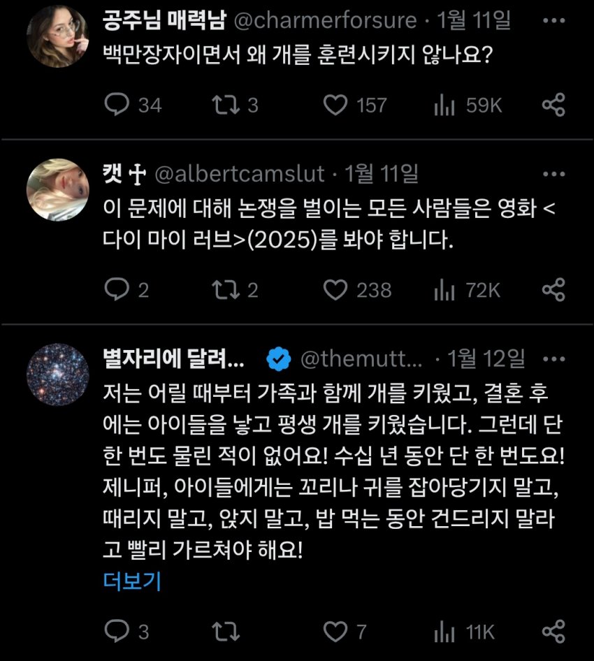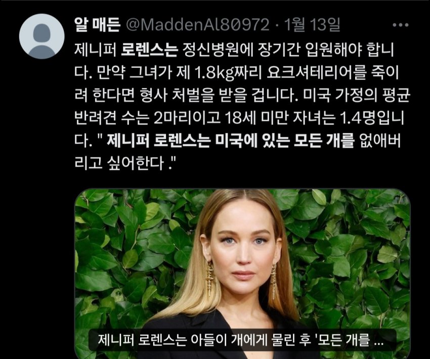 아니 뭐 틀린말도 아니긴해 ㅋㅋㅋ 개를 자식처럼 여기다 진짜 지 자식물리니 그나마 정신 차린건데 애초에 개를 진짜 자식처럼 안여기고 통제를 했다면 없었을 일이지 ㅋㅋ 지랄하는애들이 제정신을 가진애들이 아니라 개를 자식처럼 여기는 애들이라 그런거지