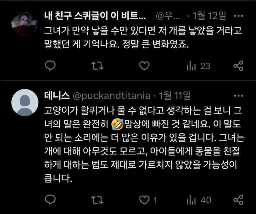 고양이는 끼해봐야 할퀴고 끝인데 개는 물어죽일수 있으니 틀린말은 아니지 개빠들은 논리가 없다니까