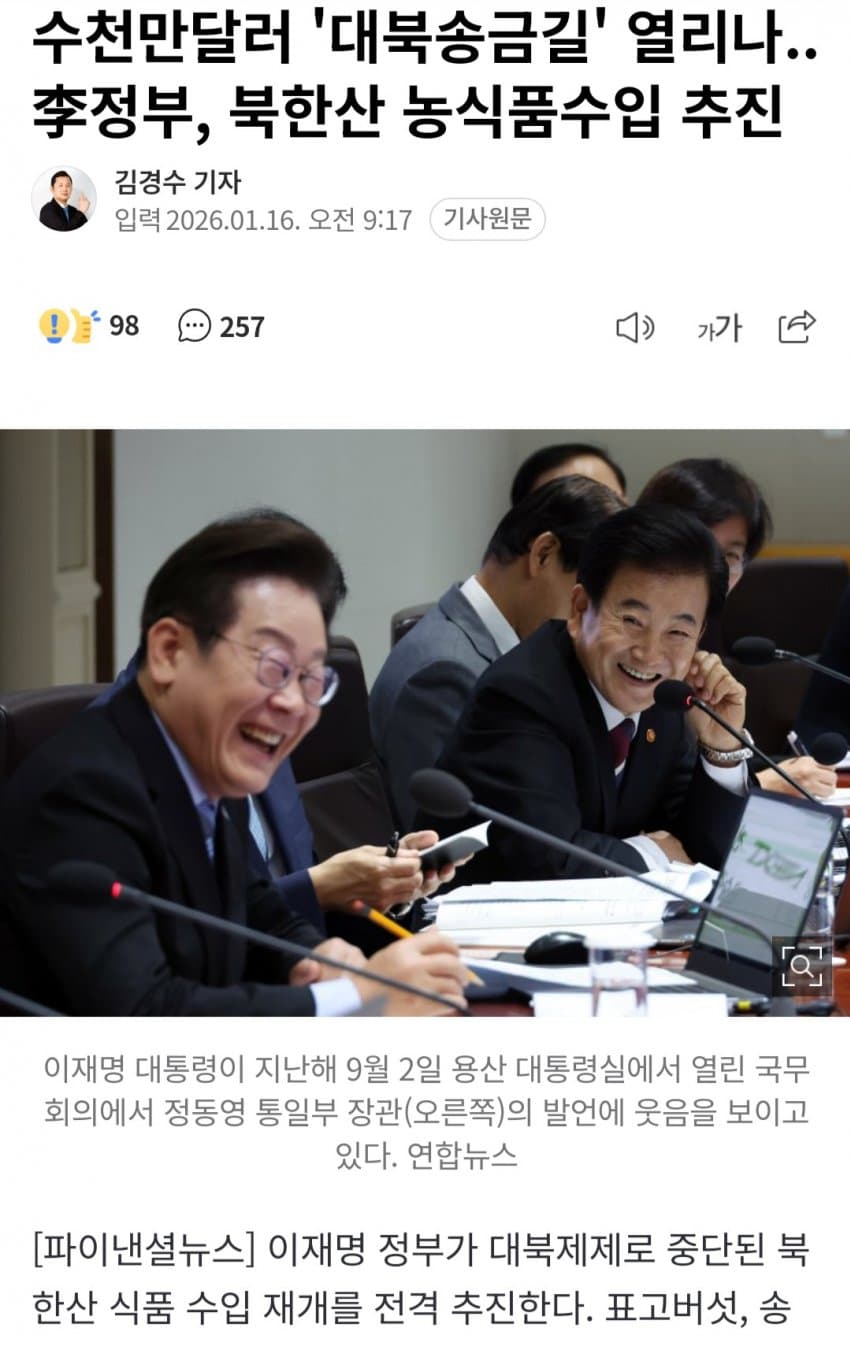 이재명 정부, 북한산 농식품수입 추진