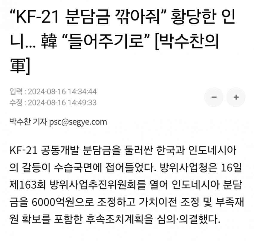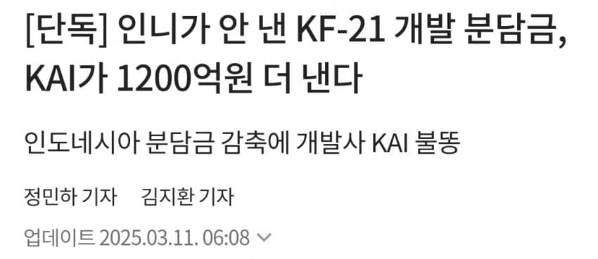 와중에 인니는 [인도네시아에 의해 개발된 KF-21]로 언론플레이 중 ㅋㅋㅋㅋㅋ