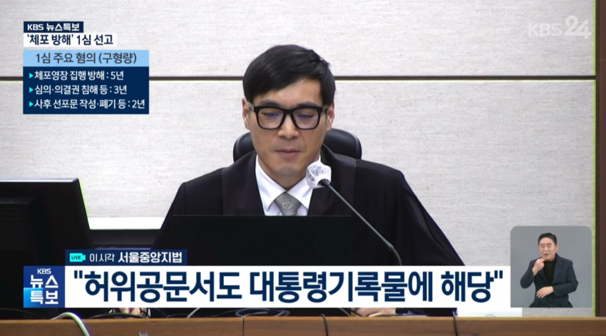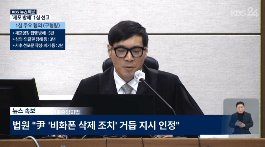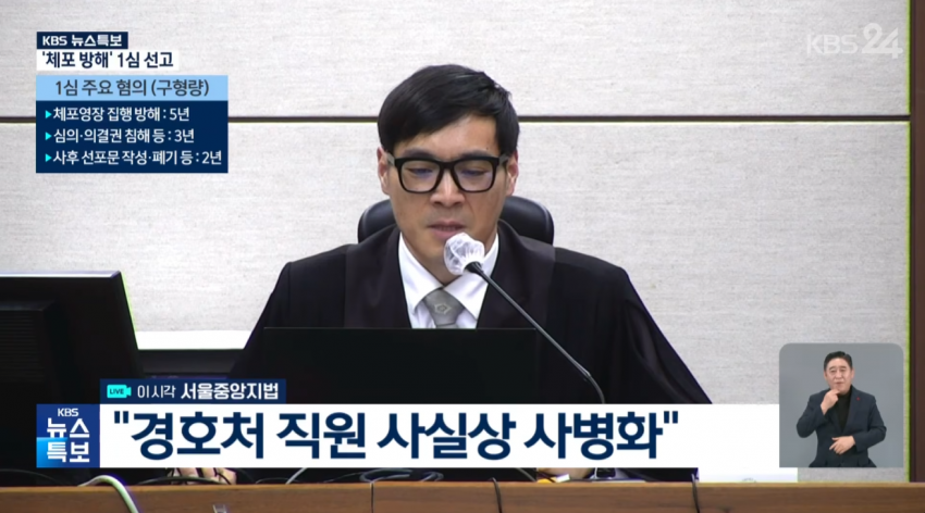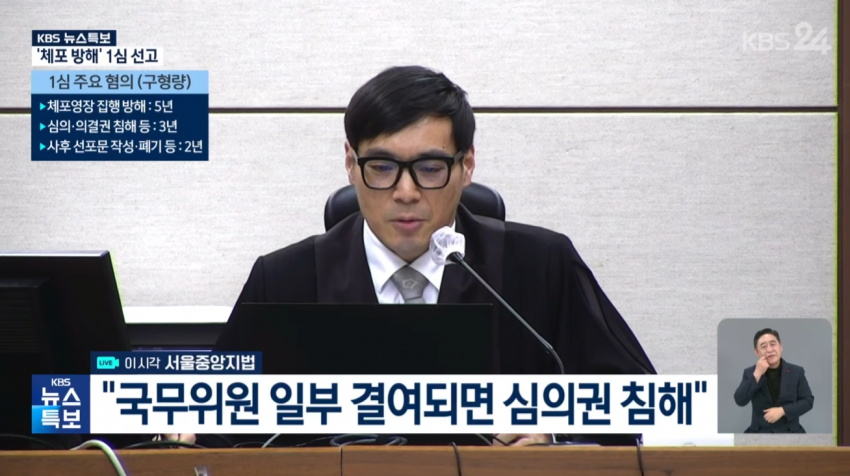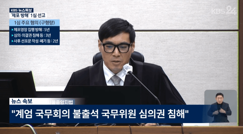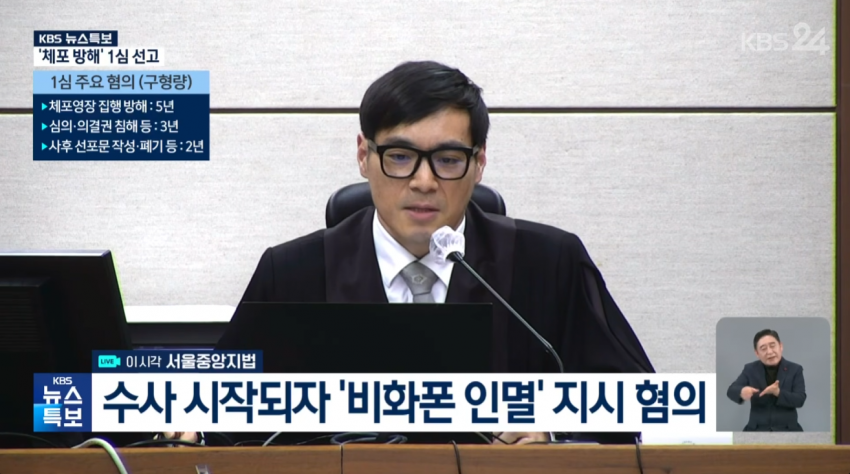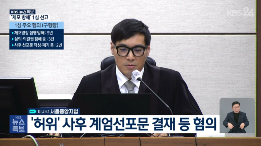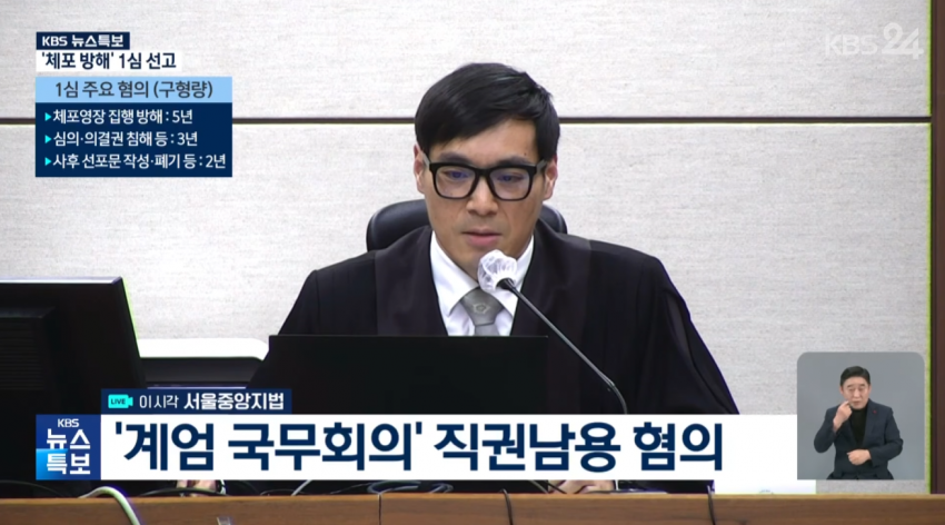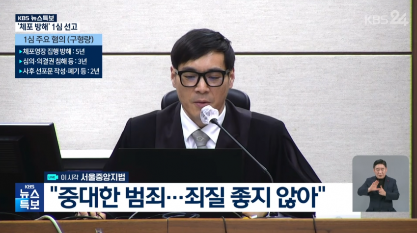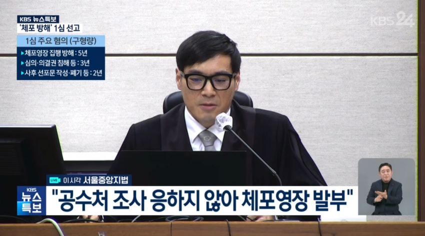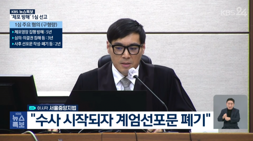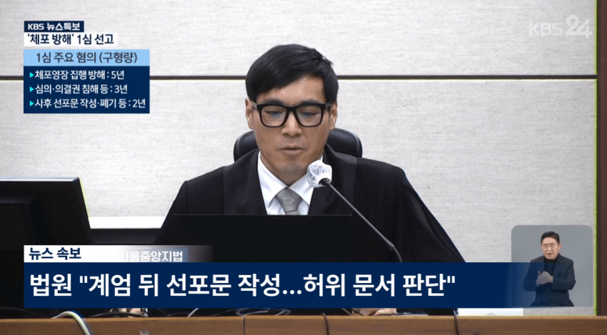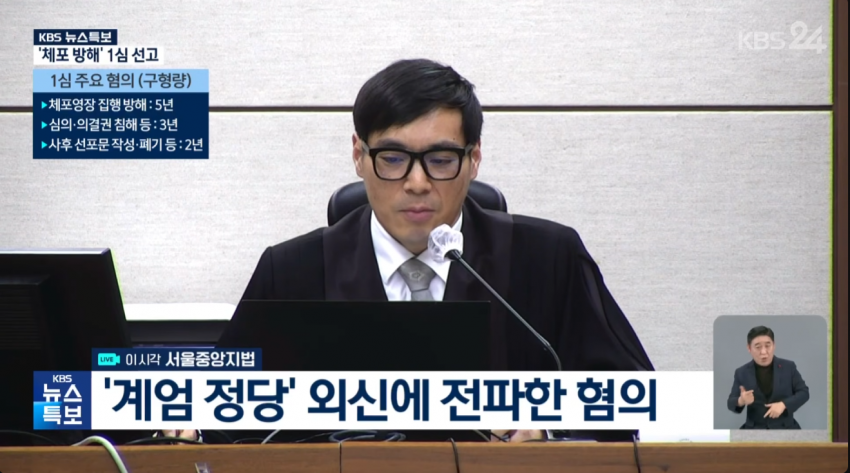 계엄은 사형 "구형"이고 저건 체포방해죄로 징역 5년 "선고"받은거임. 둘이 별개야