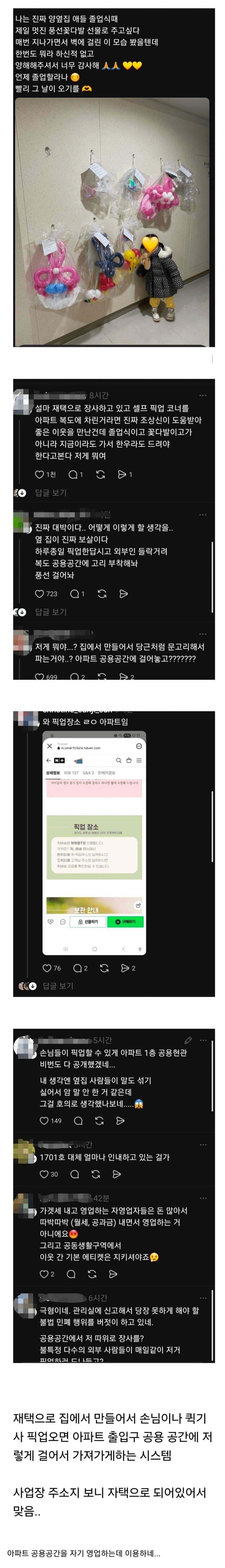 아파트 이웃주민들에게 민폐라고 논란중인 풍선 자영업자