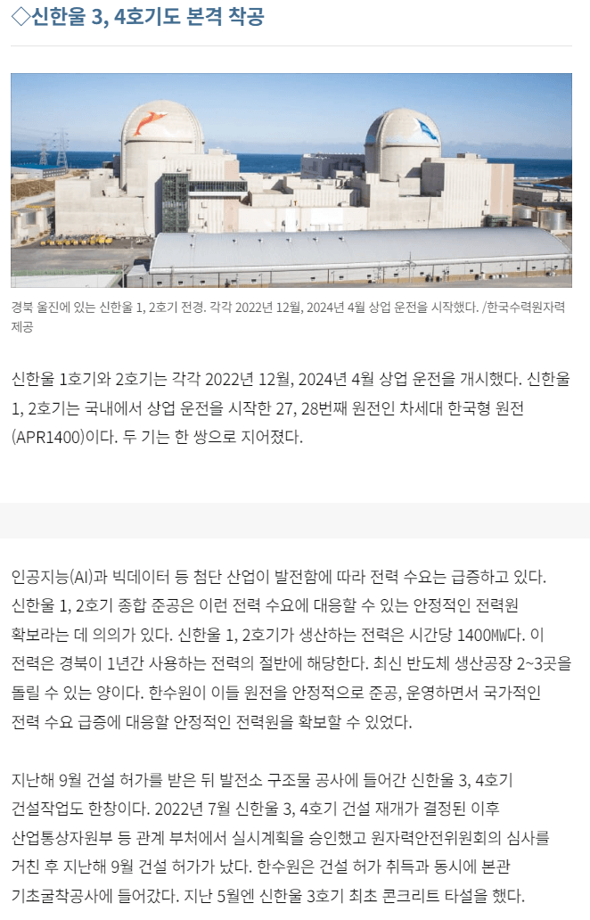 부산&울산의 새울 3호기가 이제 운영허가를 받았으며 4호기는 올해 하반기에 예정돼있다