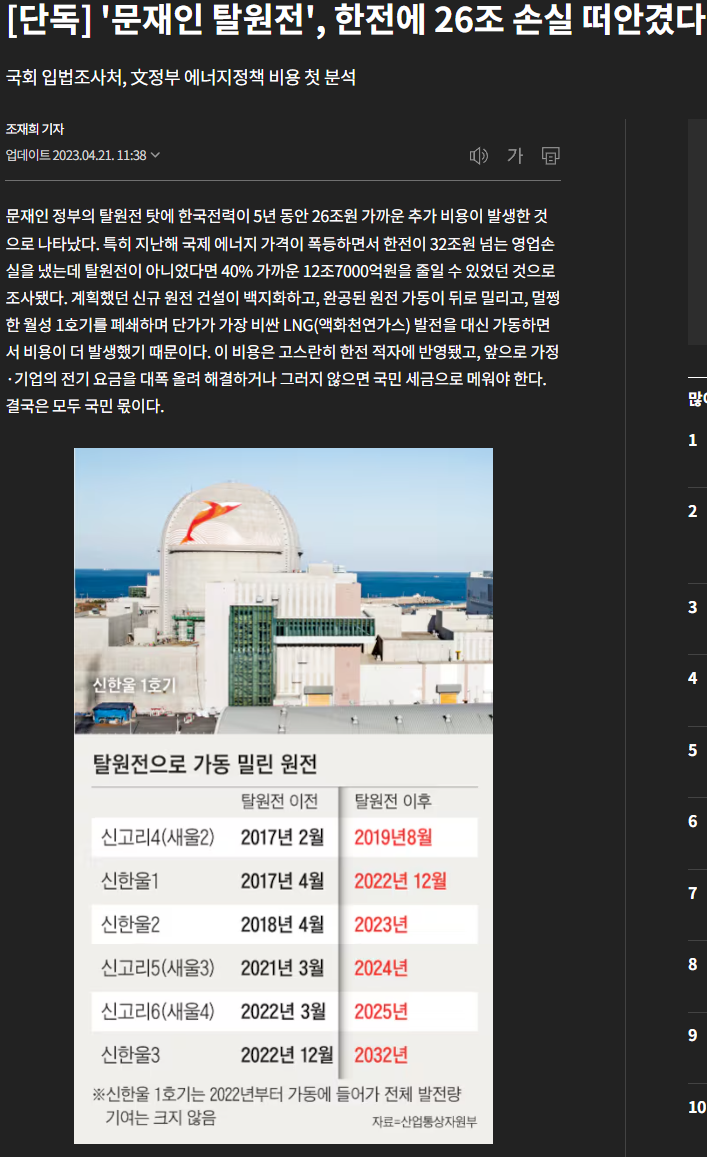 그래서 한국은 부랴부랴 더 많은 전력을 확보하기 위해 새로운 원자로를 착공, 준공하기 시작한다.