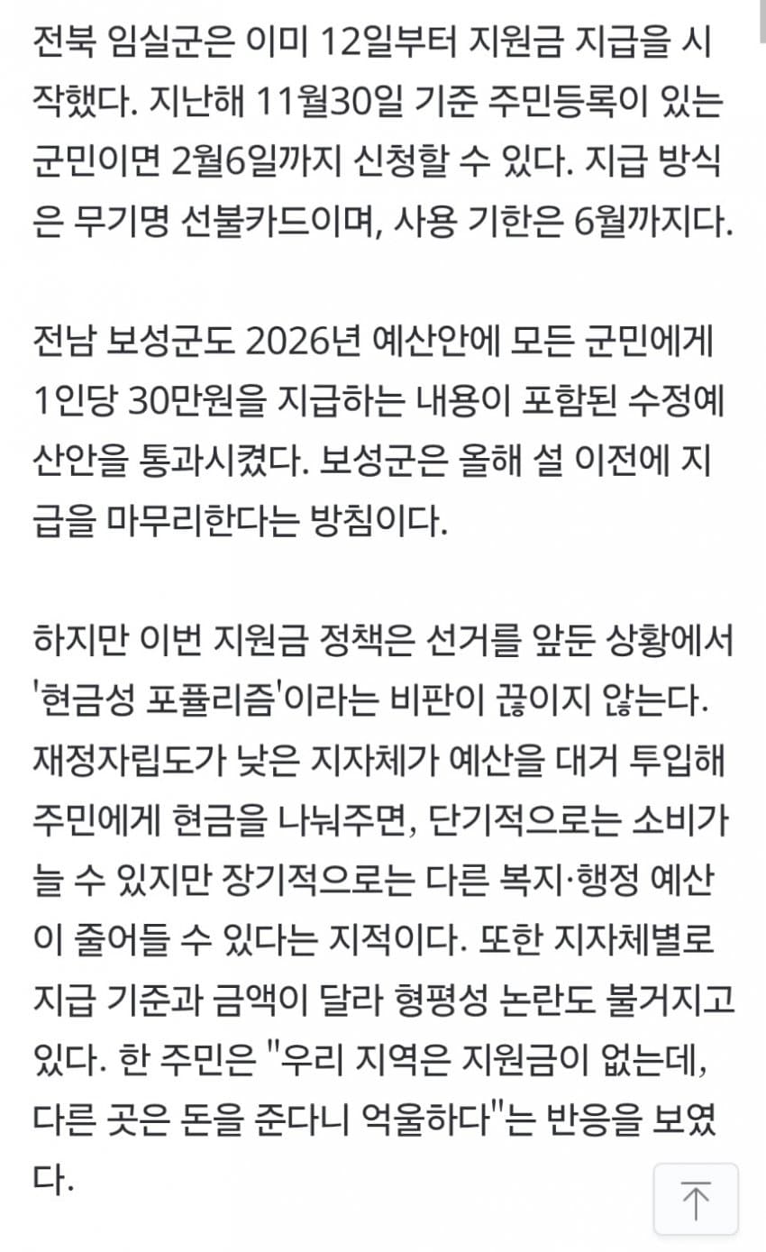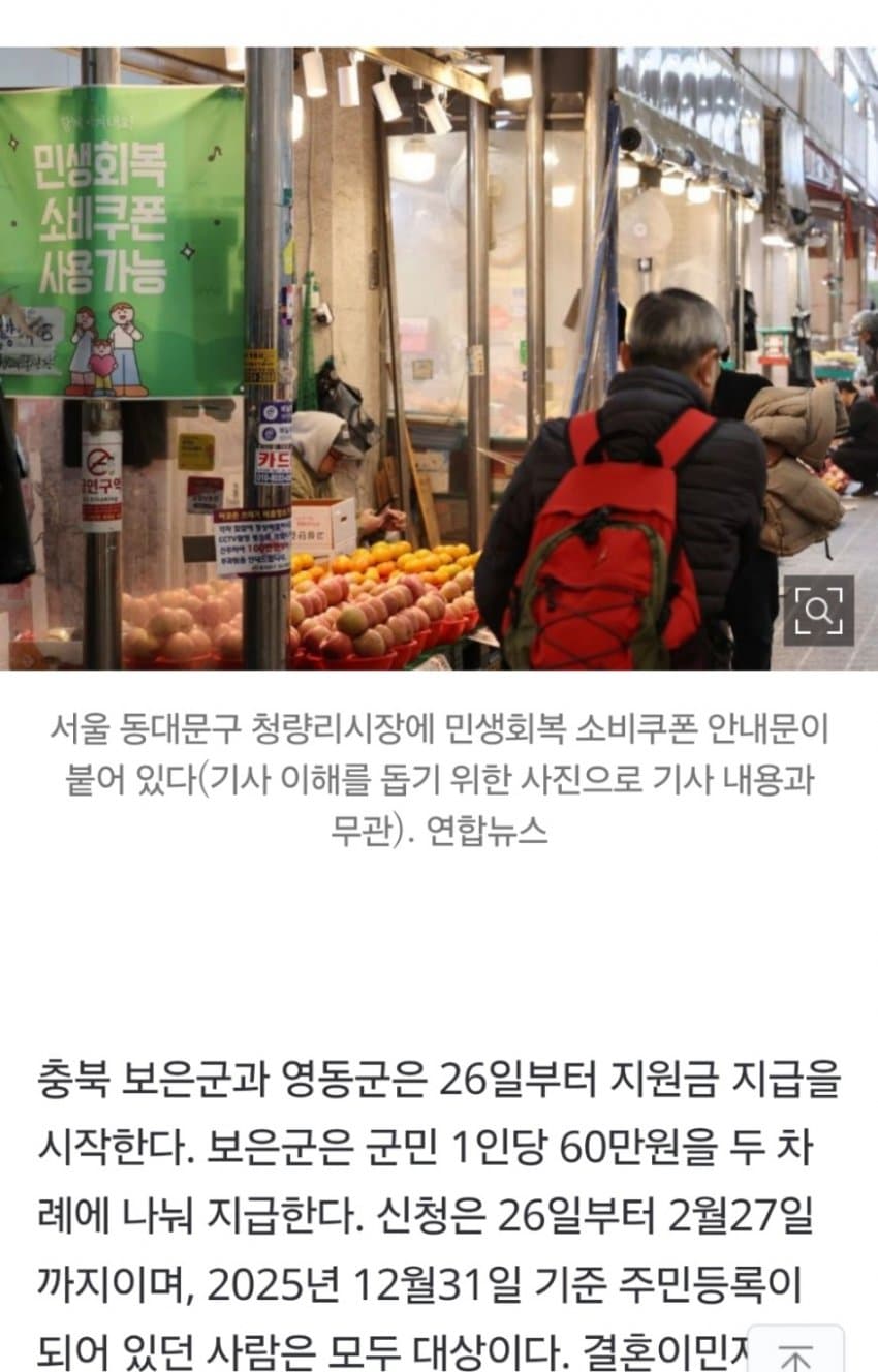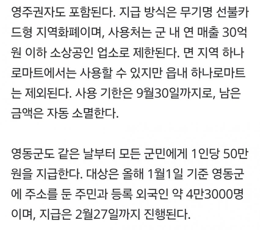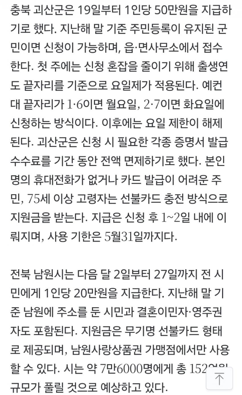 충북 보은군과 영동군은 60만원 지급 ㄷㄷ