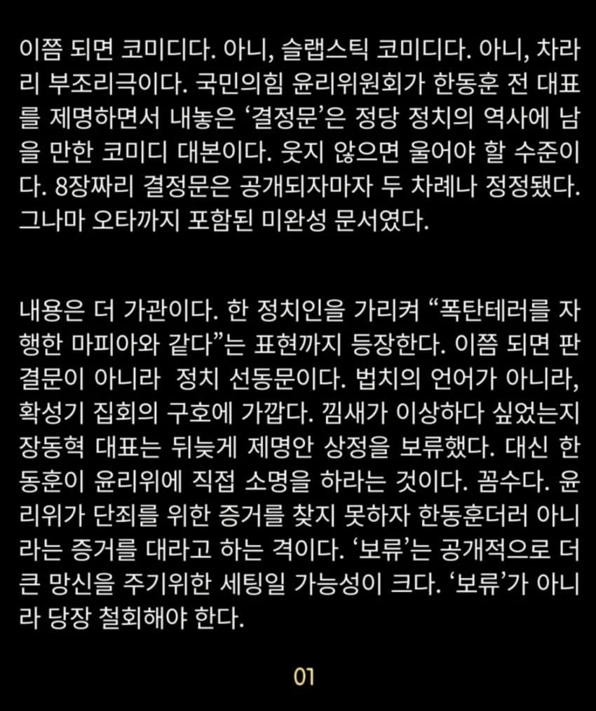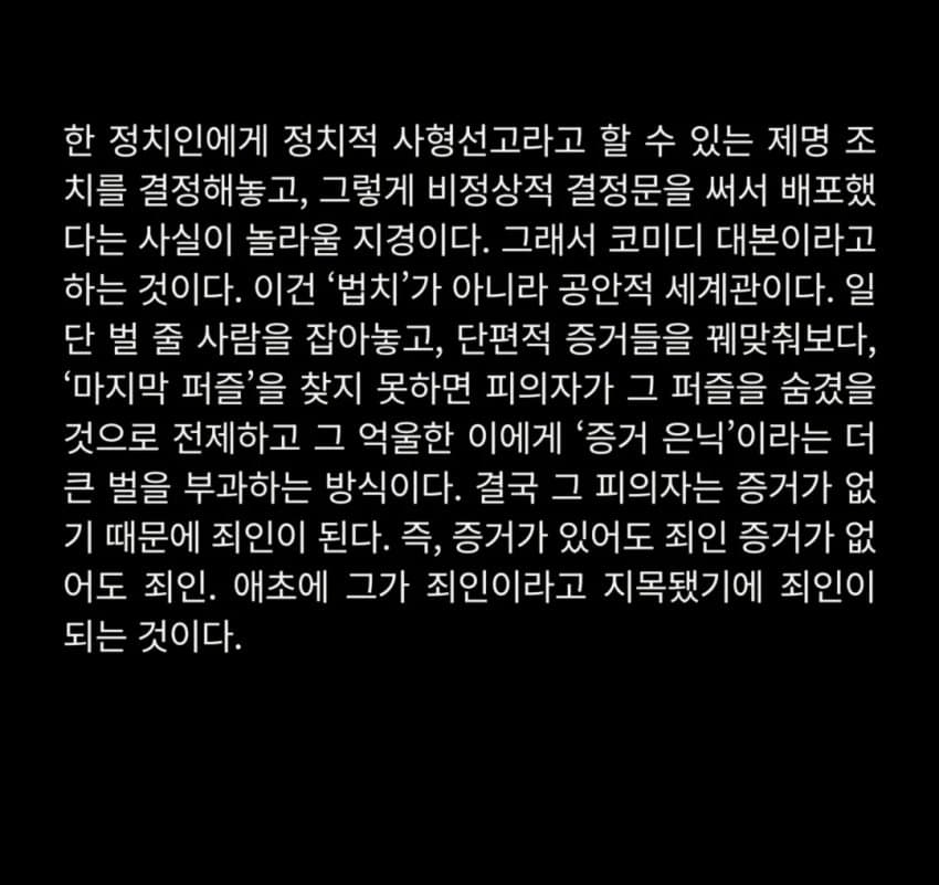 내란의힘 내부에 쁘락찌가 있다고 지들이 말했잖아.저게 그 쁘락찌 작품 아닐까?누가봐도 자기네들 지지율 떨어질만한 짓을 공개적으로 저렇게 하고있는데저게 저들의 진심 이라면 그게 더 슬플거같은데?