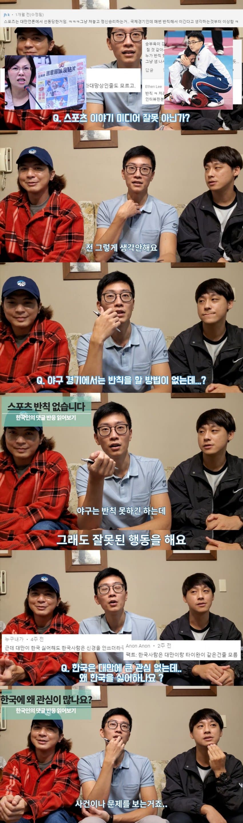 태권도로 혐한하던게 2013년인가 대만에서 엄청 유명한 사건이 있었는데. 대만 국가대표가 부정기구 차고 나와서 실격패했는데. 상대방도 심판도 아무도 한국인이 없었는데 한국이 조작했다고 루머 퍼지면서 그때부터 대만에서 한국=스포츠 더럽게하는 나라 라는 이미지 열심히 퍼뜨림. 진짜 한국이랑 하나도 상관없는 사건이었는데 한국에 안좋은 이미지 다 뒤집어씌우고