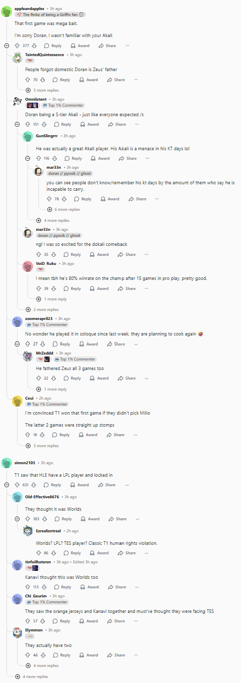 T1 카나비 보고 월즈인줄 안듯 이라는 댓글에 카나비도 그런듯 대댓있는거 개웃기네 ㅋㅋㅋㅋㅋ