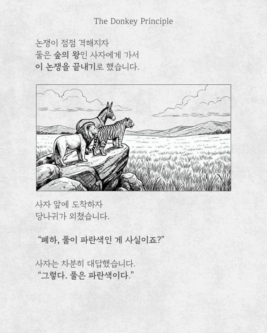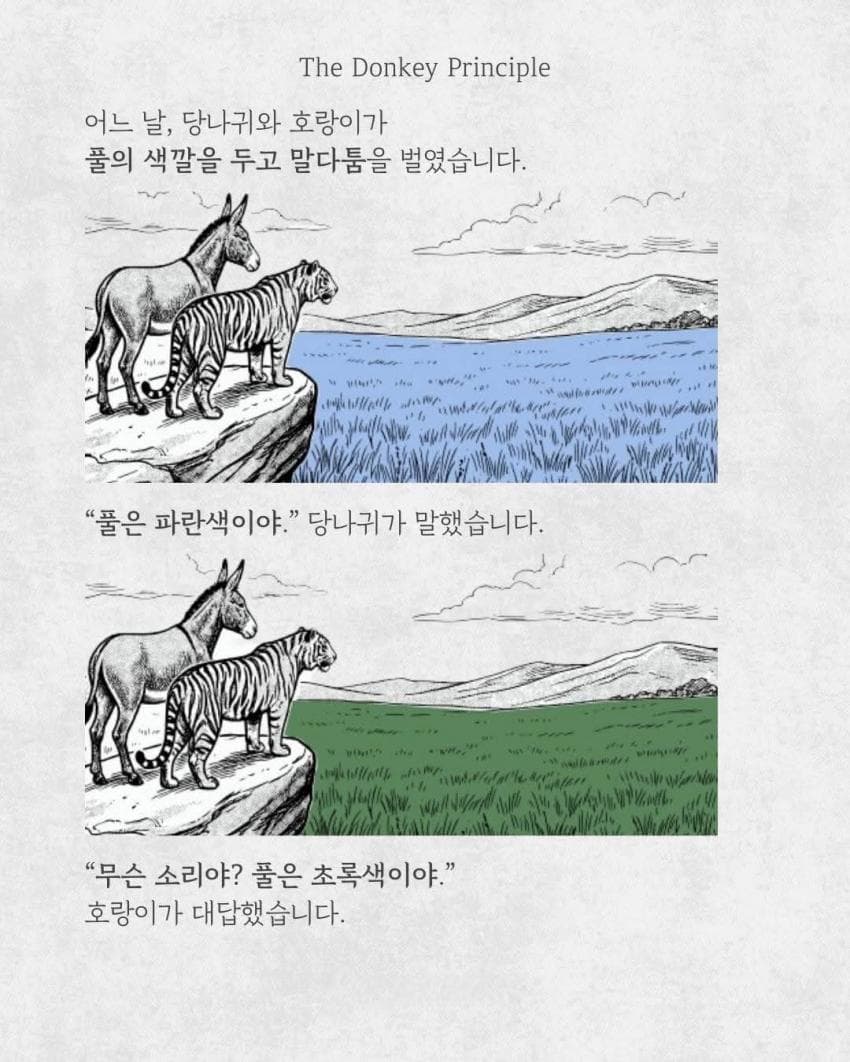 반박을 안하고 응 니말이 다맞아~ 하면 당나귀는 정말로 자기가 맞다고 확신하게된다