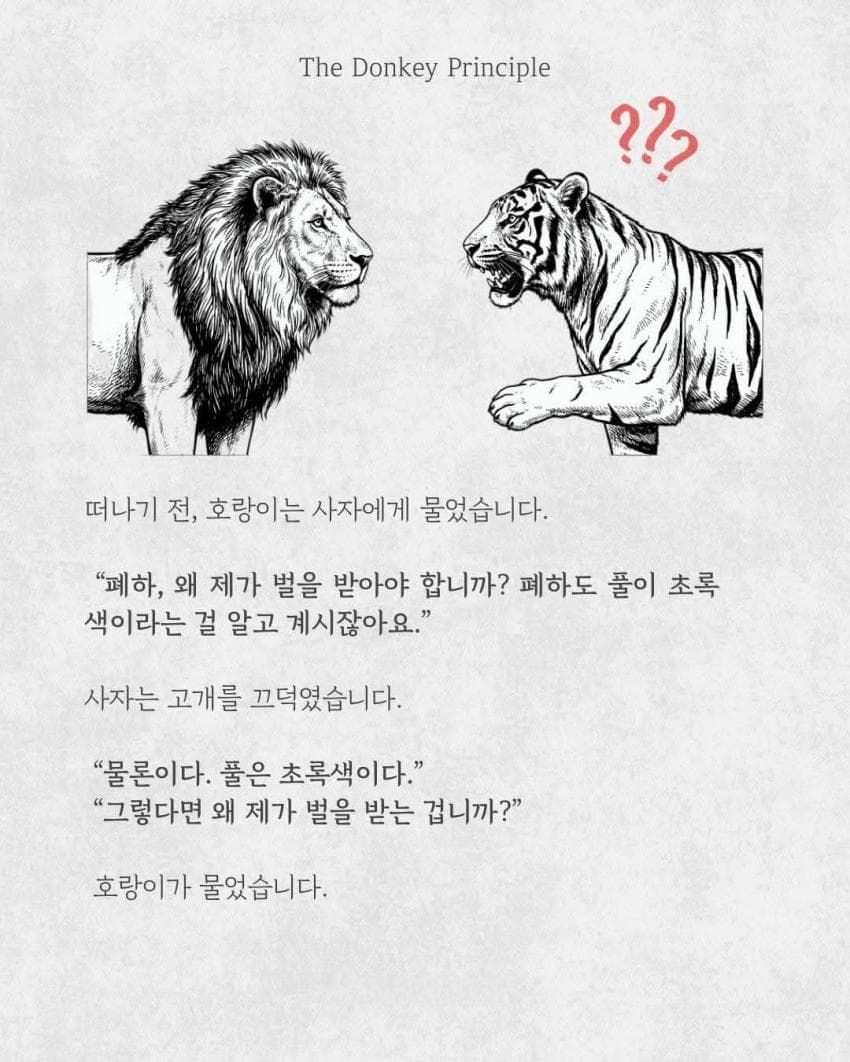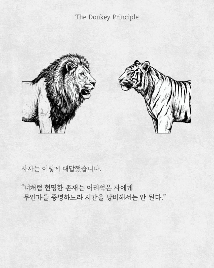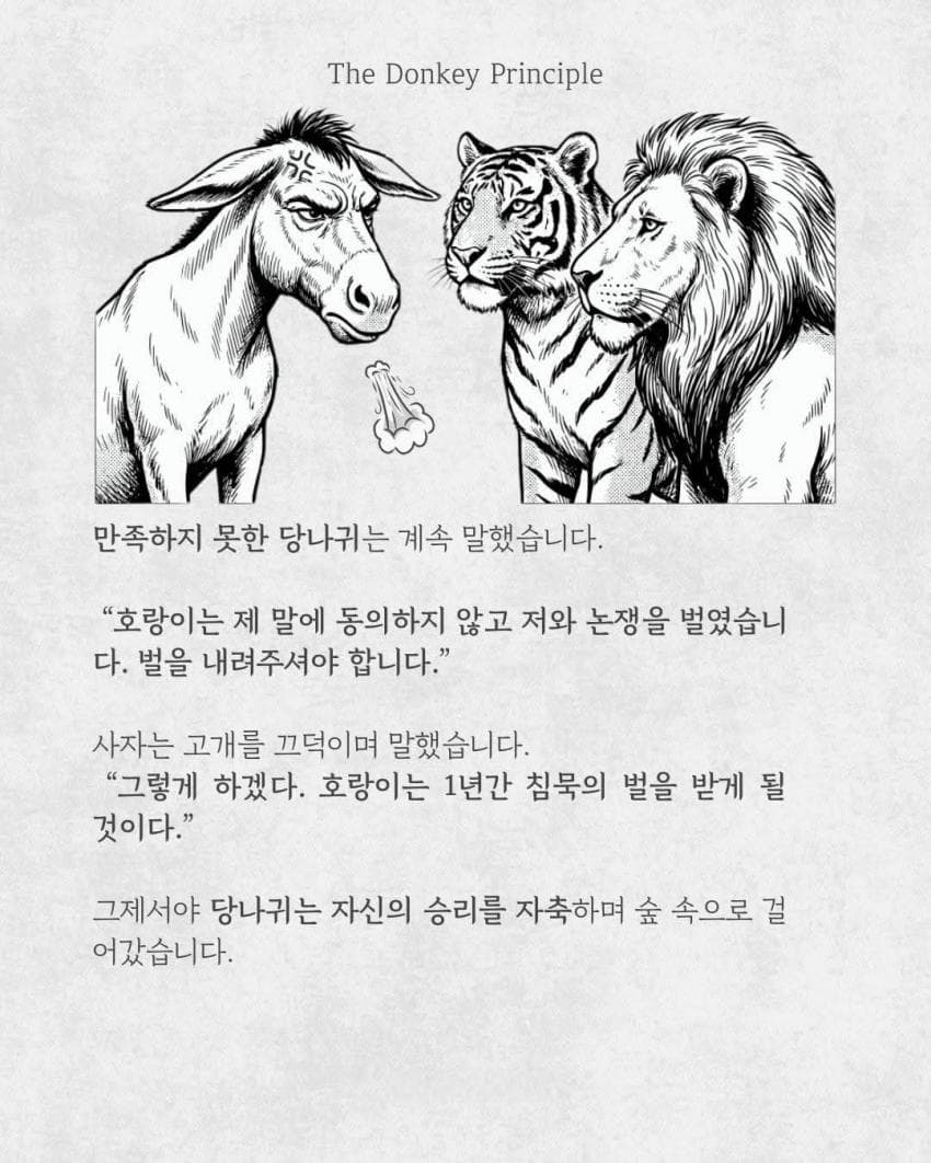 호랑이에 이어 사자까지 옆에다 불렀을땐, 사이좋게 당나귀 잡아먹는 이야긴줄 알았는데