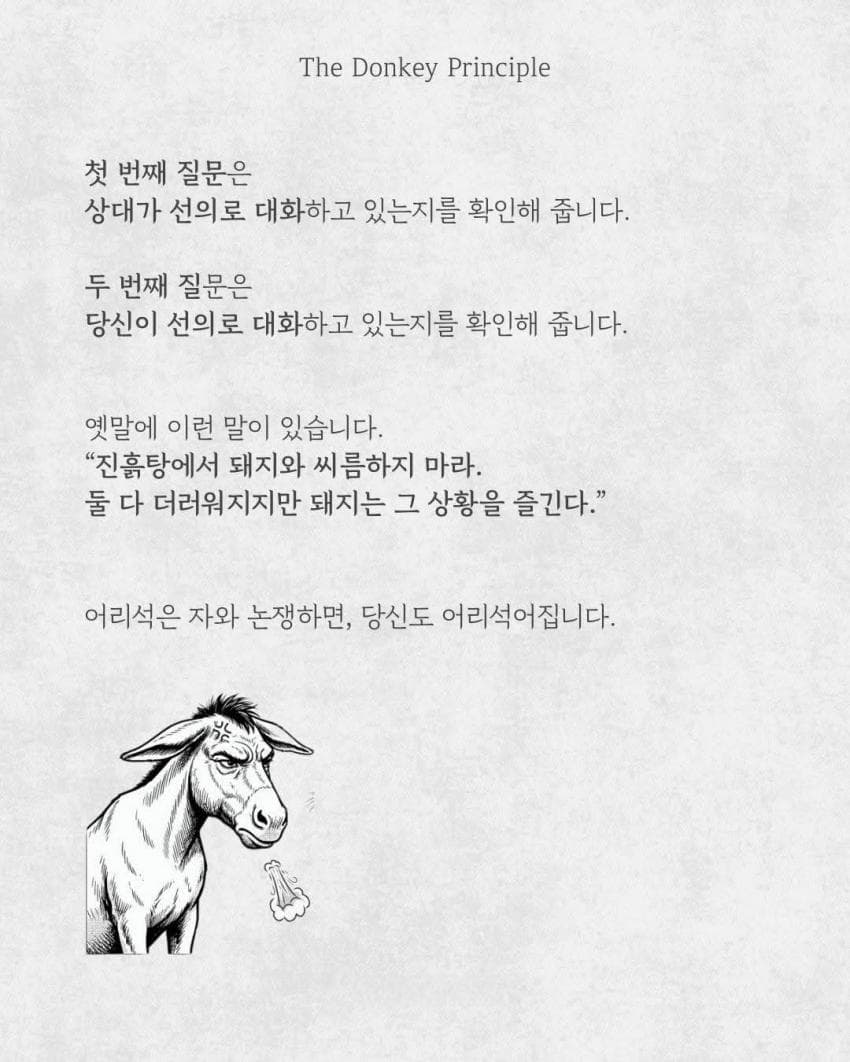 인생을 행복하게 사는 비결: 바보들과 언쟁하지 않는 것입니다 <-- 이 짤을 ㅈㄴ 길게 늘려놨노