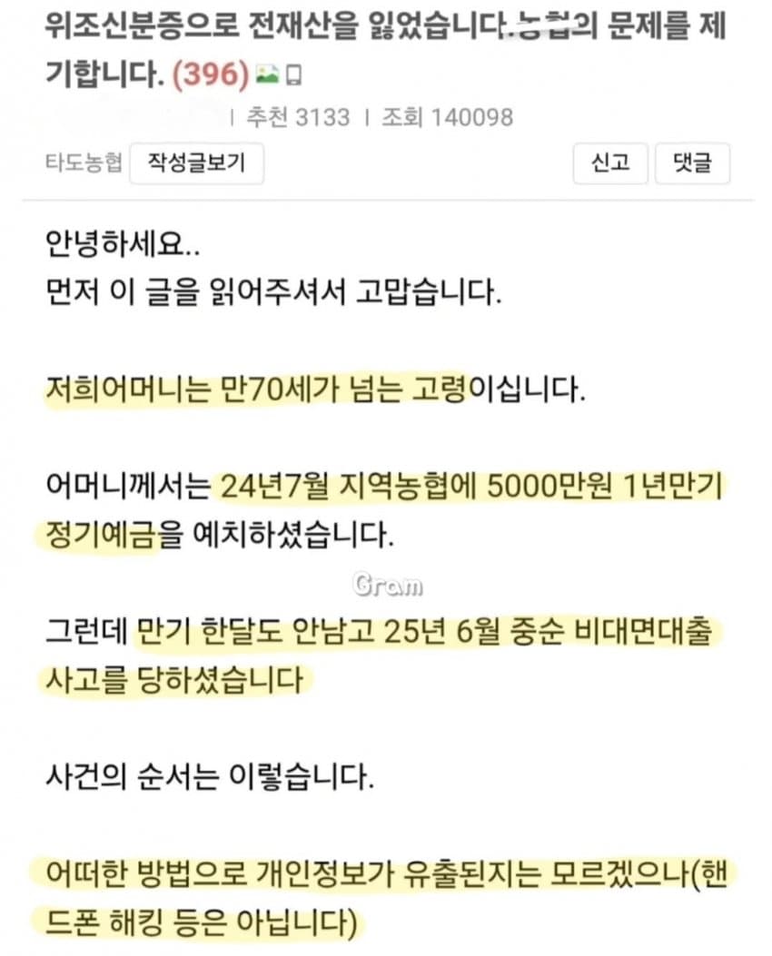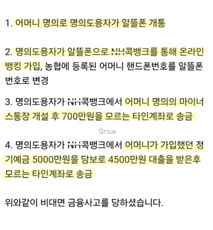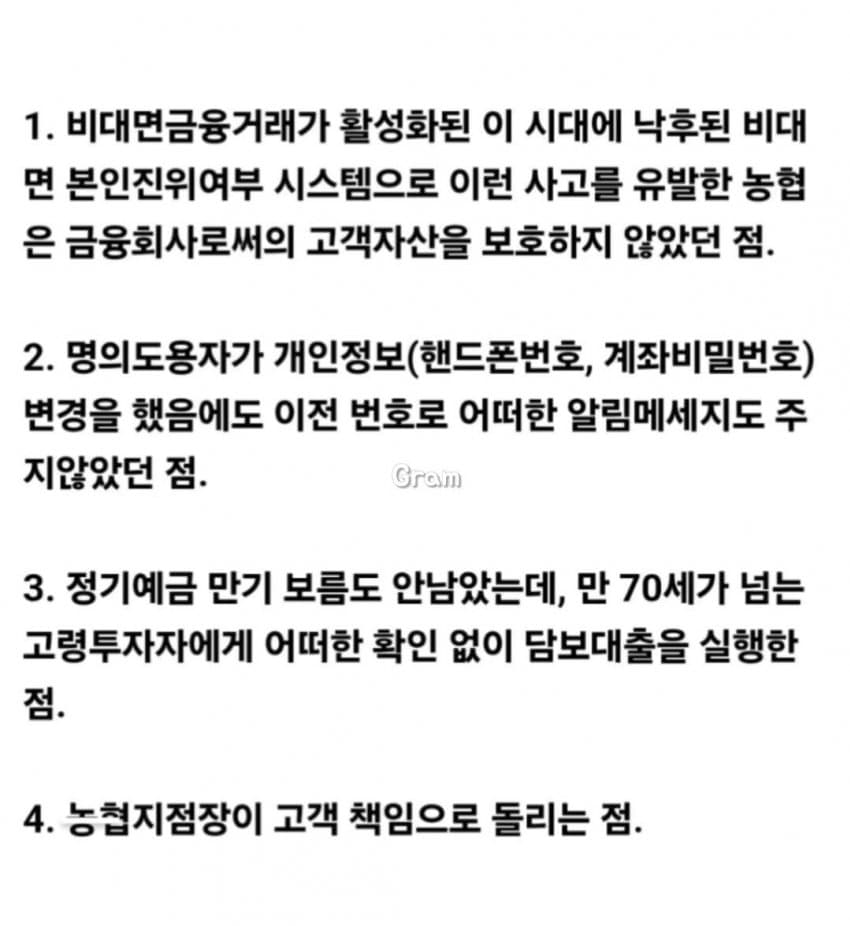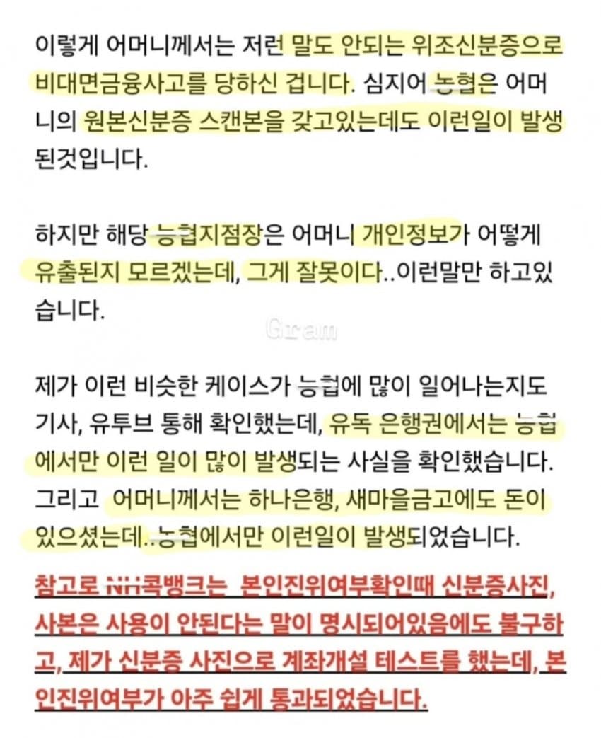 이런 일 한두번도 아니고 주위 소중한 사람들 있으면 다른 은행으로 무조건 바꾸라 그래라 NH랑 농협은 믿거 임 뉴스나 다큐프로그램에서 한두번 보나