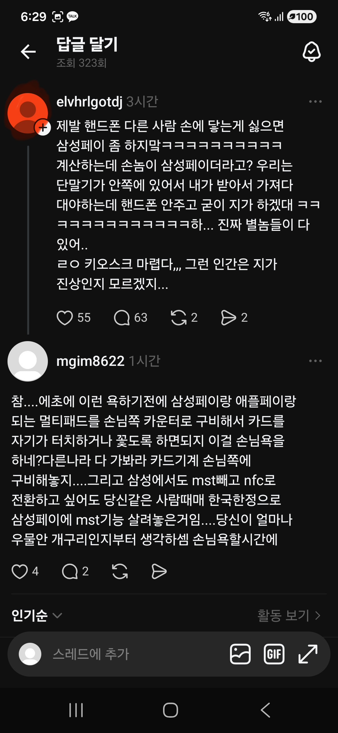 이것도 스레드 버이럴임? 내 주위 스레드 쓰는걸 본적이 없음