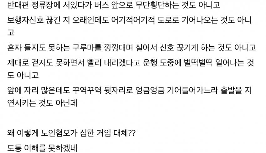 노인들이 버스 안에서 넘어져서 다치기라도 하면