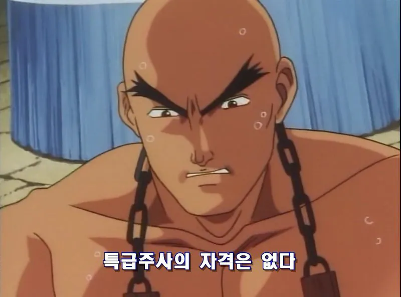 목에 중식칼을 두개나 걸고 있는 대머리한테 삿대질을 하네 목숨이 여러개인건가