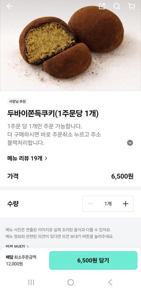 최소 주문금액 12000원이면 배달앱 시스템상 두쫀쿠도 2개 주문 가능하게 되어있다. 근데 두쫀쿠 2개 시키면 빠꾸 시키고 필요없는 식사 강매하는거라 저건 욕먹어도 싼 짓임