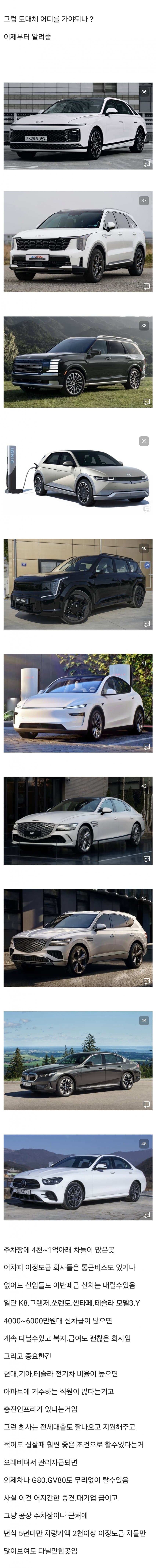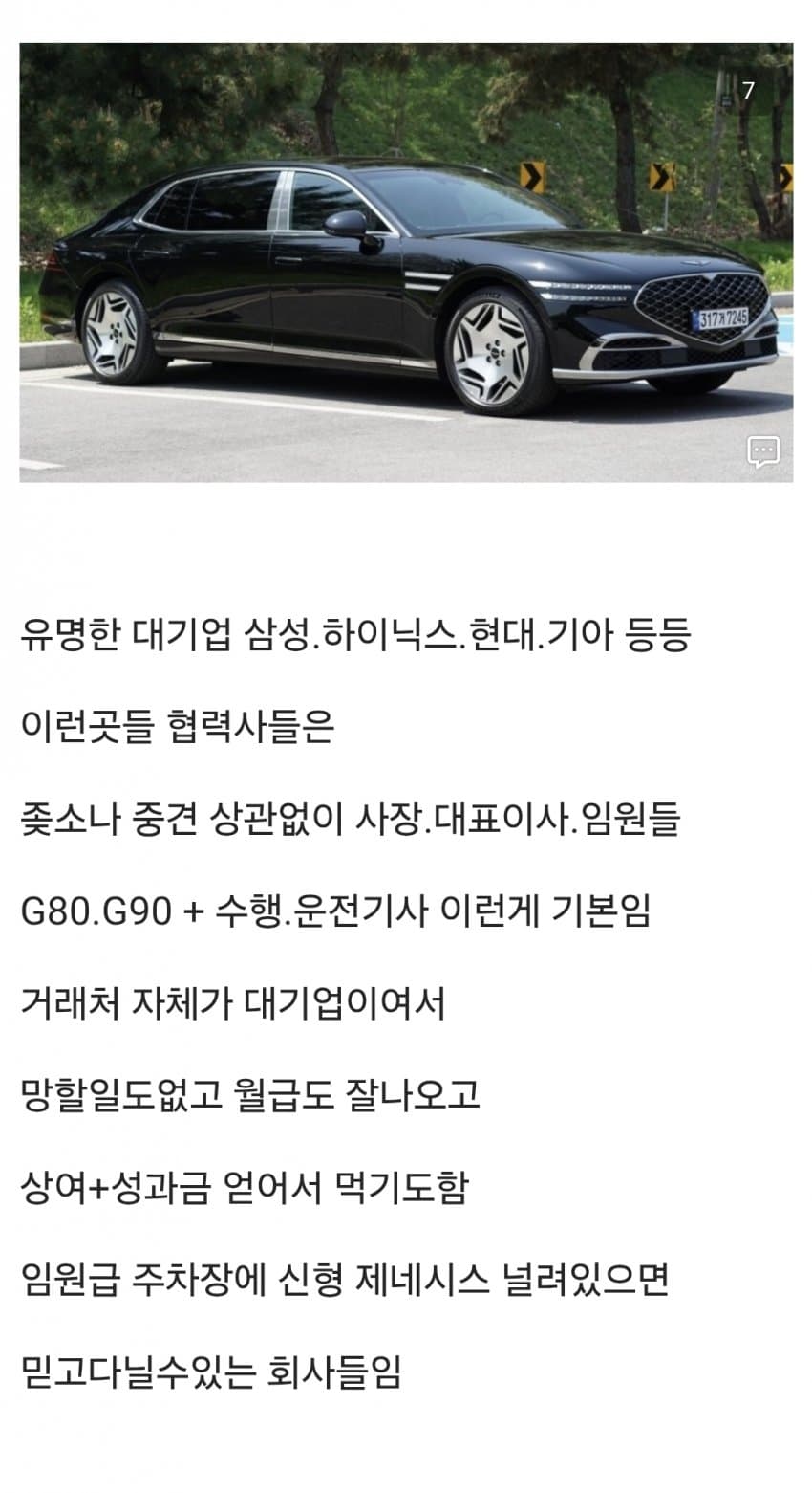임원들은 그랜저(법인차) 타고 다니는데 직원주차장에는 g80 gv80이 널려 돌아다니는 우리 회사는 뭐냐? 현기 계열사 아님