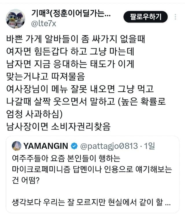 대한민국만큼 여자가 안전하고 대우받는 나라가 있냐? 군면제 100%<<<<이거부터 그냥 벨붕으로 시작인데 페미는 진짜 지능문제다